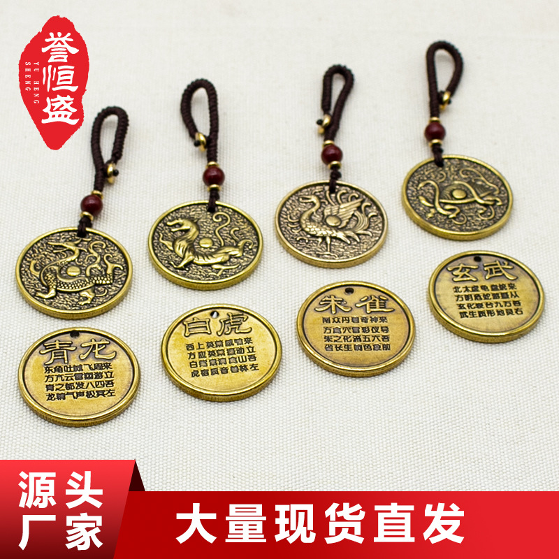 中国四大神獣真鍮キーホルダー丸型ペンダント純銅青龍白虎朱雀玄武ペンダント車の鍵