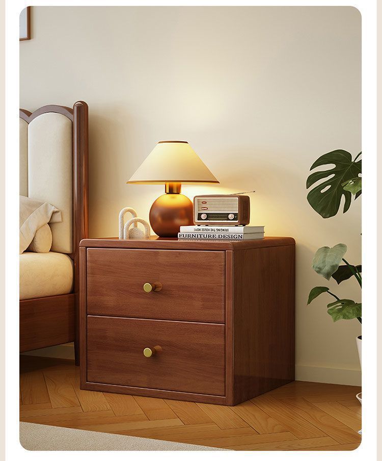 意式极简实木床头柜家用卧室轻奢高级感胡桃木黑橡木床头收纳柜子