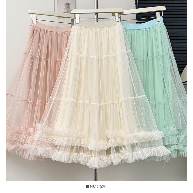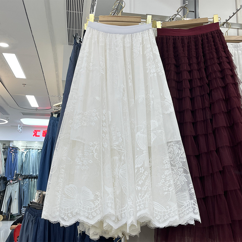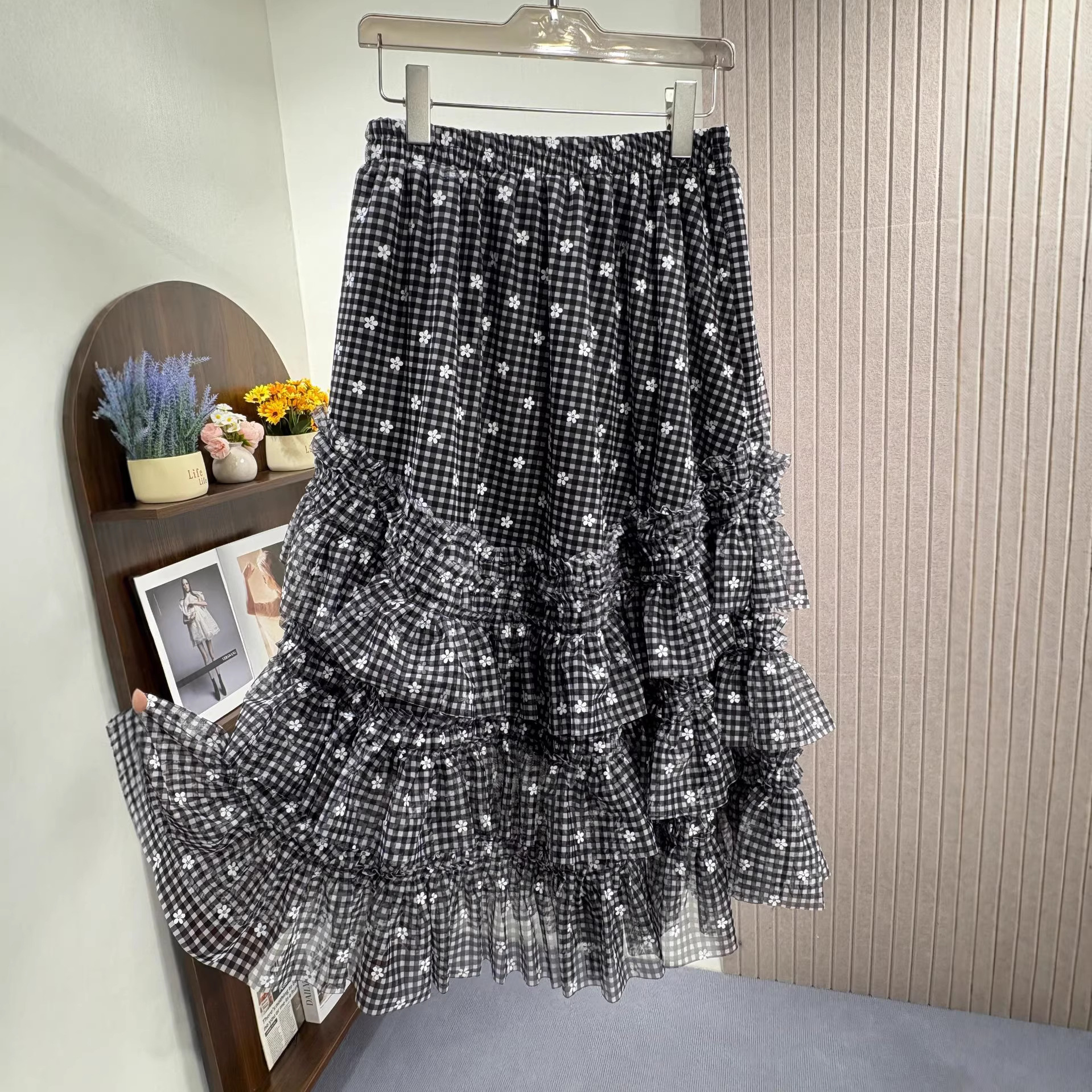 網糸ステッチケーキスカート2025春夏秋冬新作ミディアムスカートA字長スカート蓬蓬紗スカート