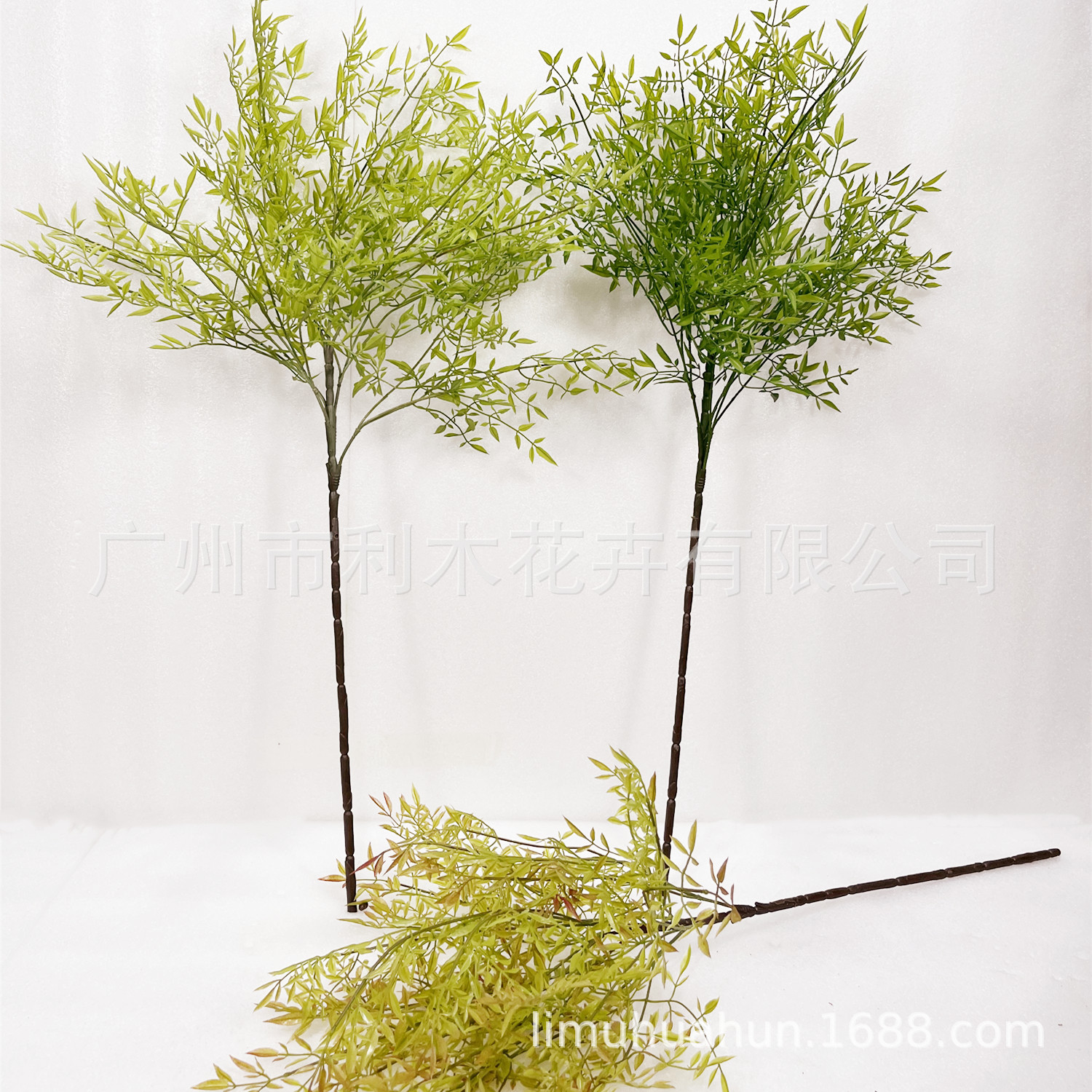 緑の植物の南天竹の造花の緑の葉の枝をシミュレーションします。
