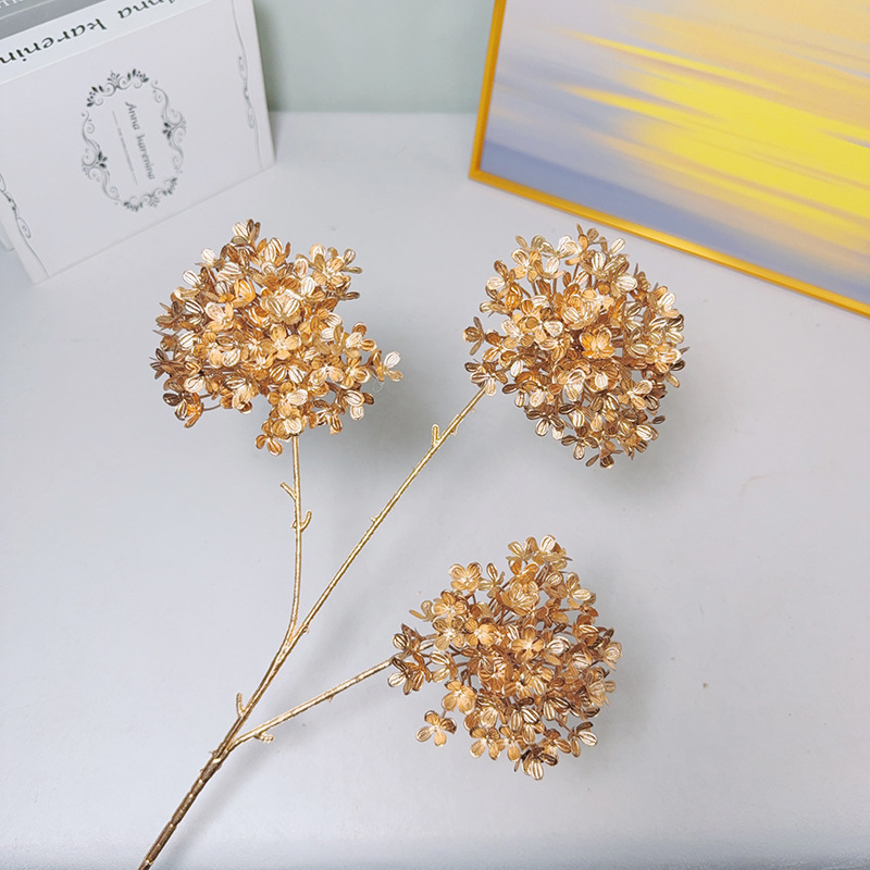 赤い果実の財果の置物の新年の抱擁の福桶の年の夜花のdiy材料は金色のイチョウの葉の花を包んでシミュレーションします。