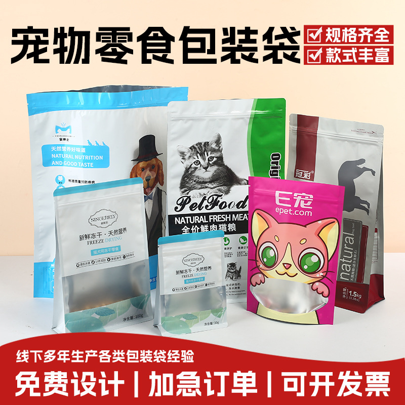 複合八面シールキャットフードバッグジッパーセルフシールドッグフードバッグ飼料バッグペットスナック包装袋印刷デザイン