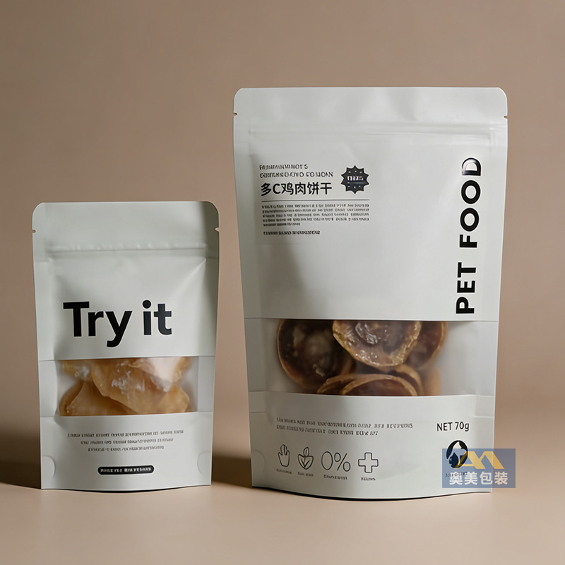 UV印刷logo宠物冻干零食包装袋开窗牛皮纸食品袋烫金猫狗粮密封袋