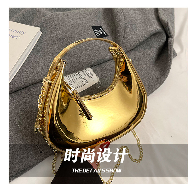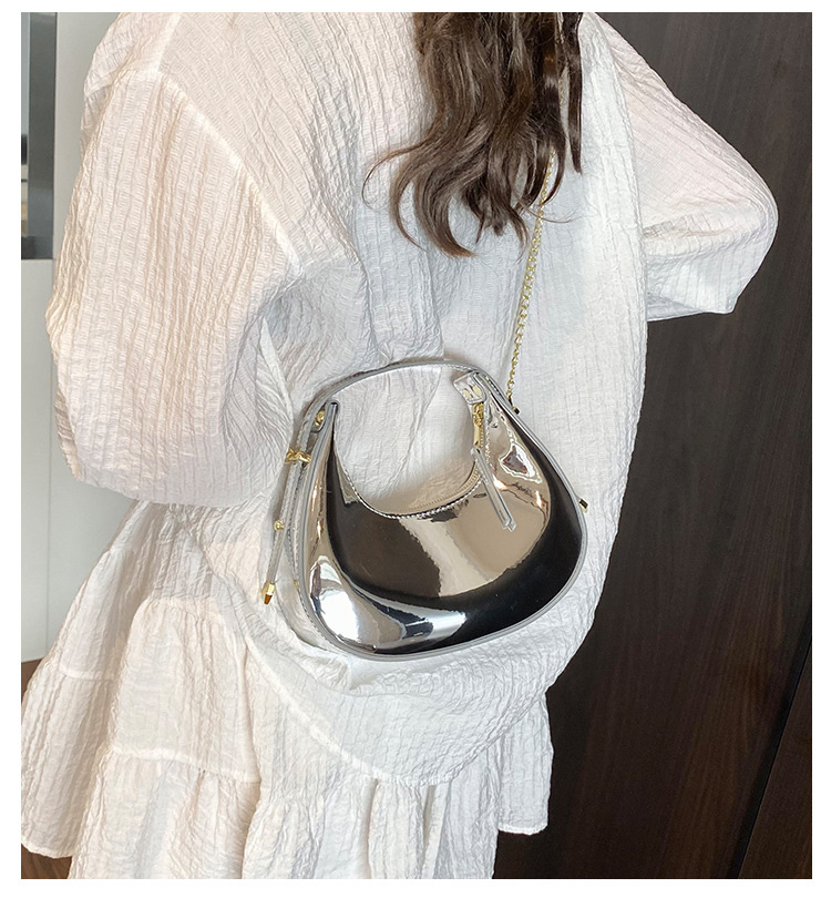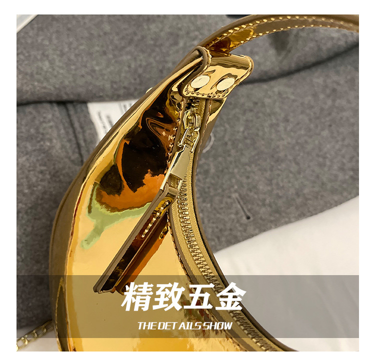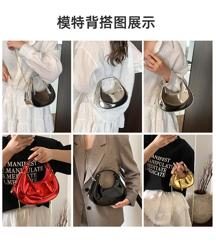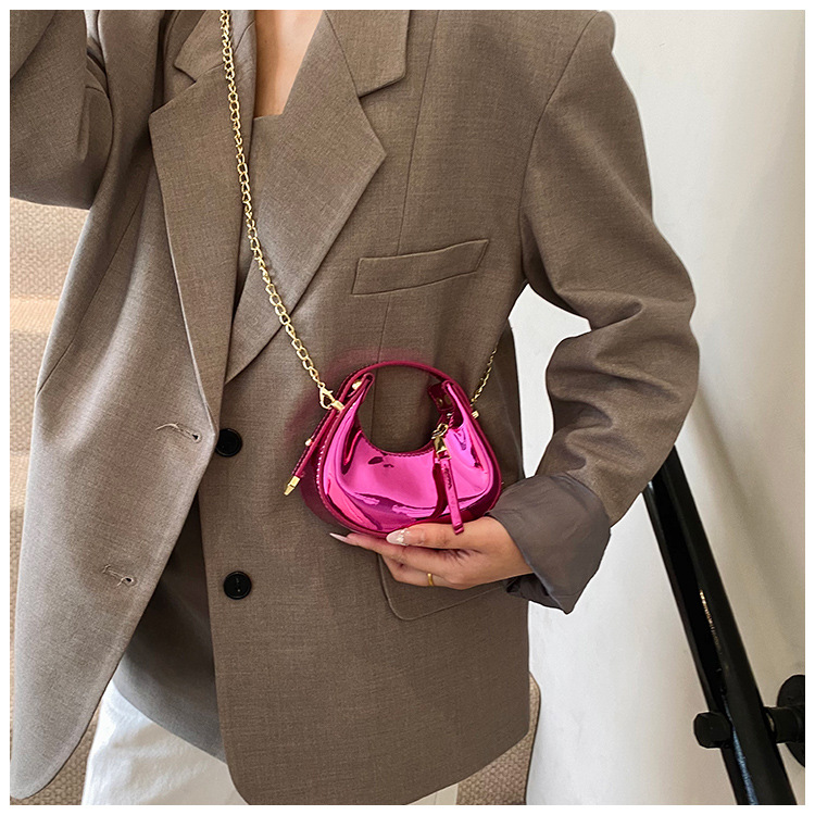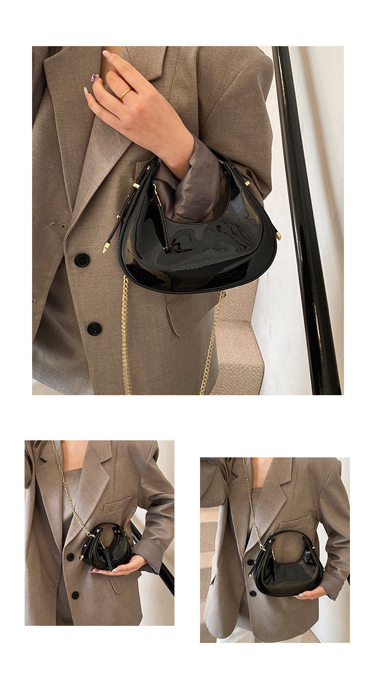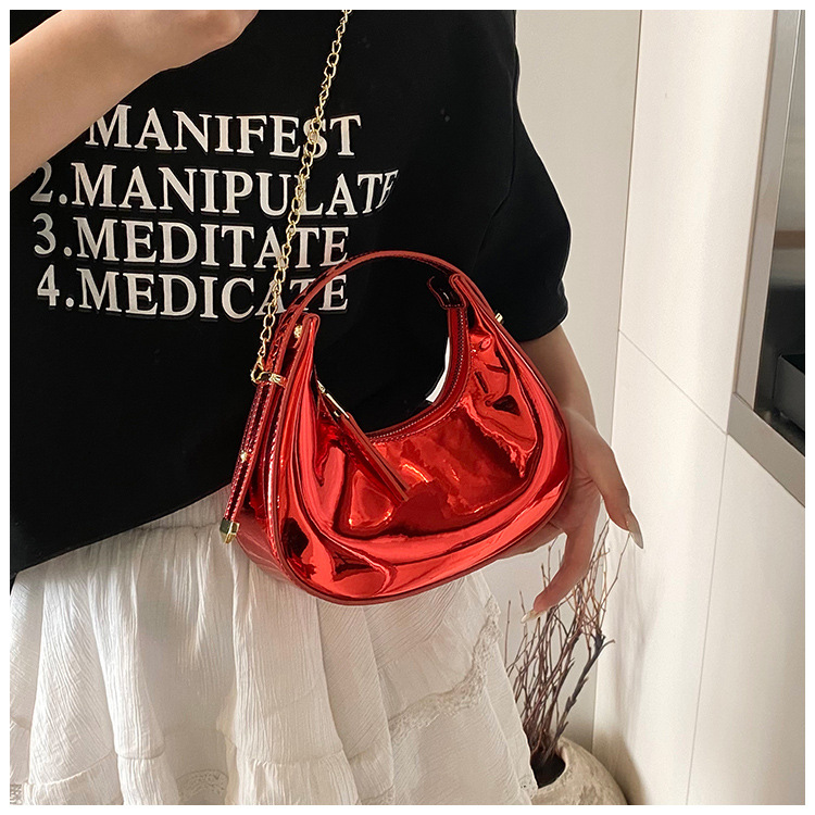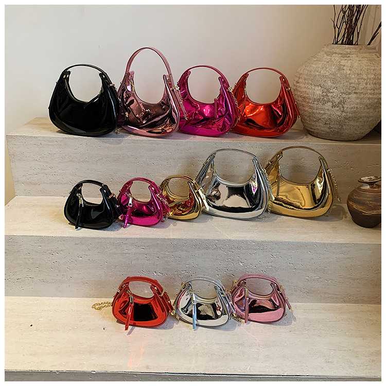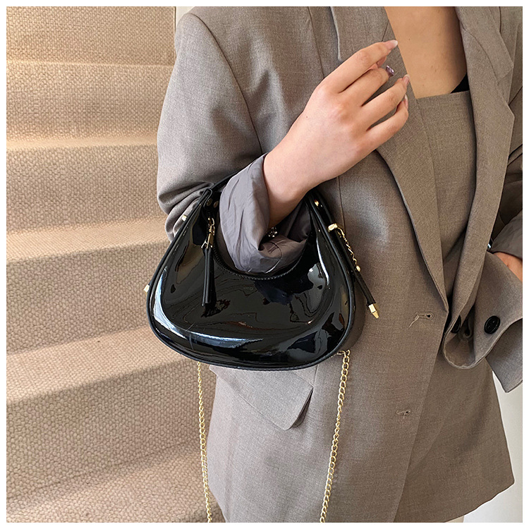 クロスボーダーのファッションバッグ女性2025ネット赤ミニ月亮包三日月包insファッション漆皮チェーン斜め掛けバッグ