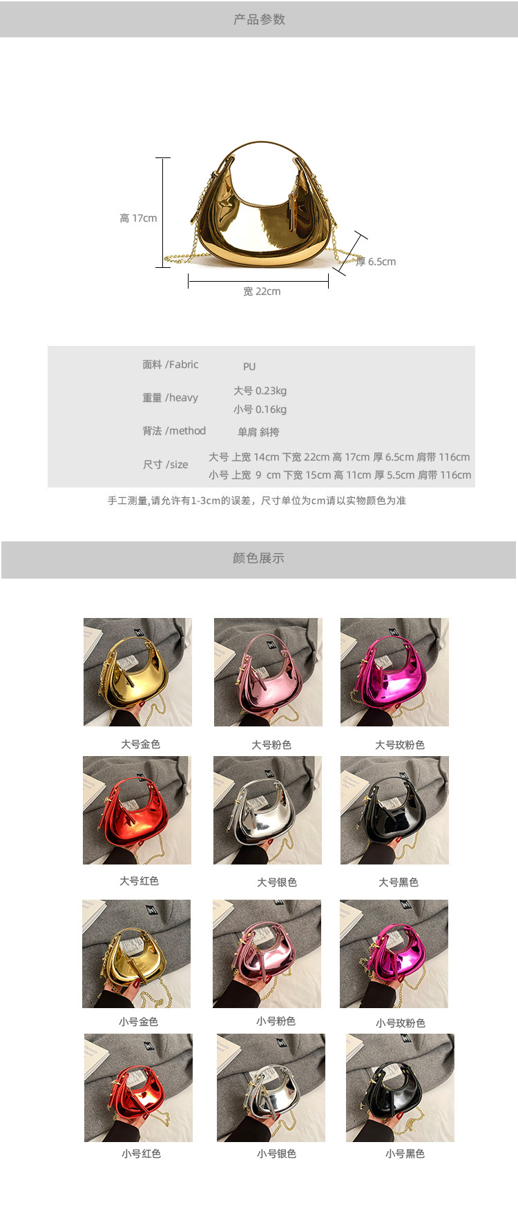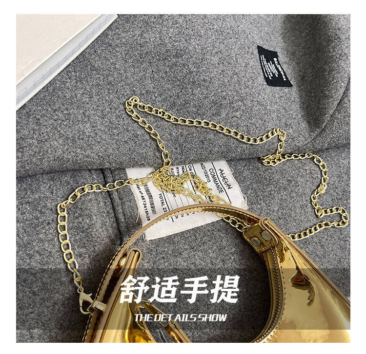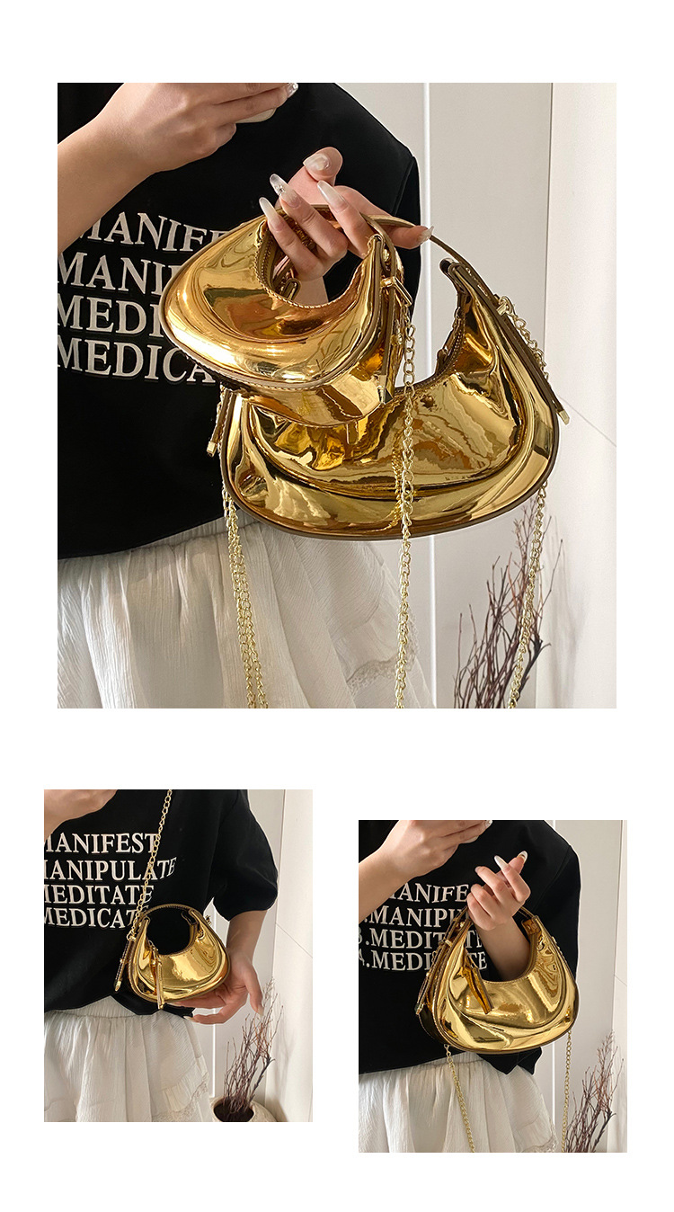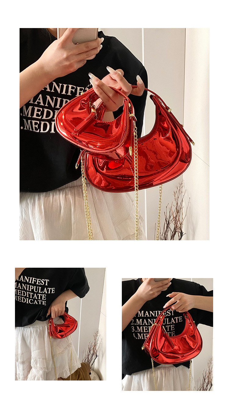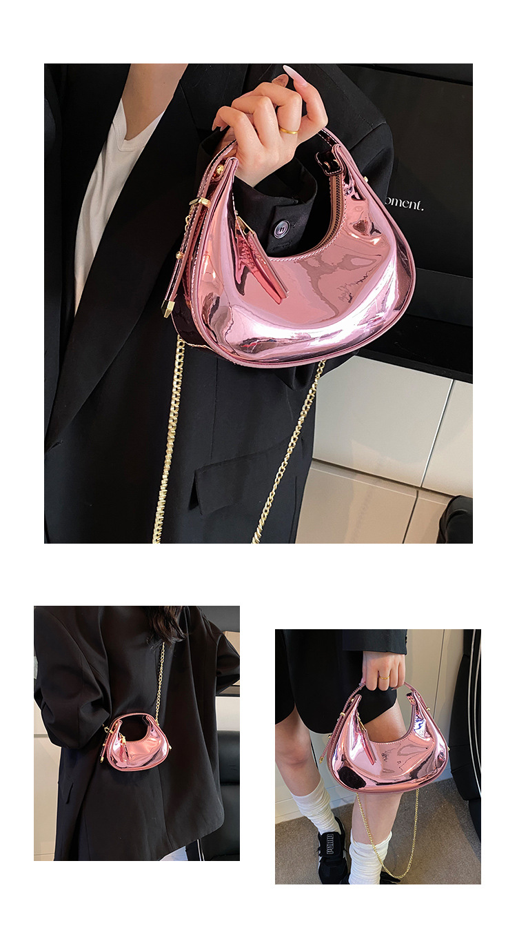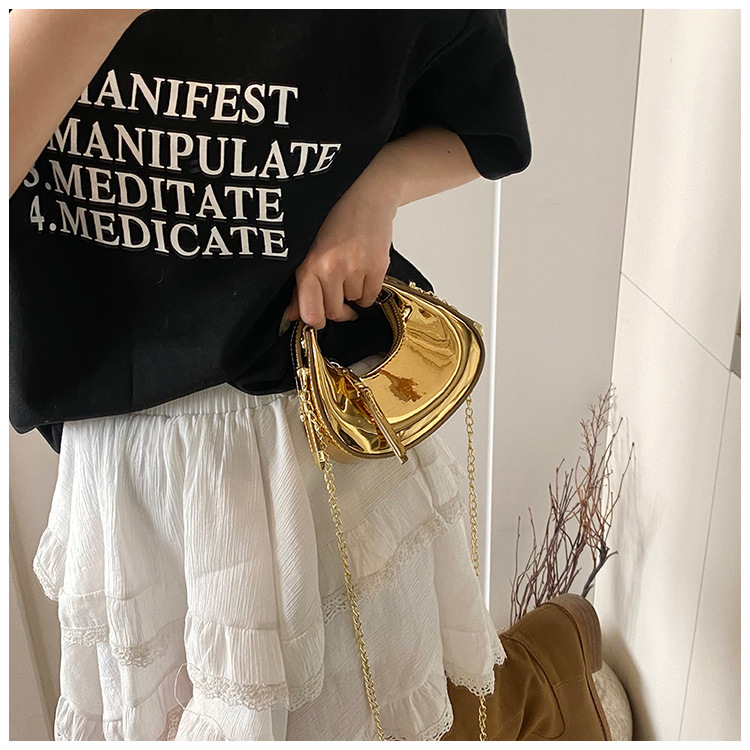クロスボーダーのファッションバッグ女性2025ネット赤ミニ月亮包三日月包insファッション漆皮チェーン斜め掛けバッグ