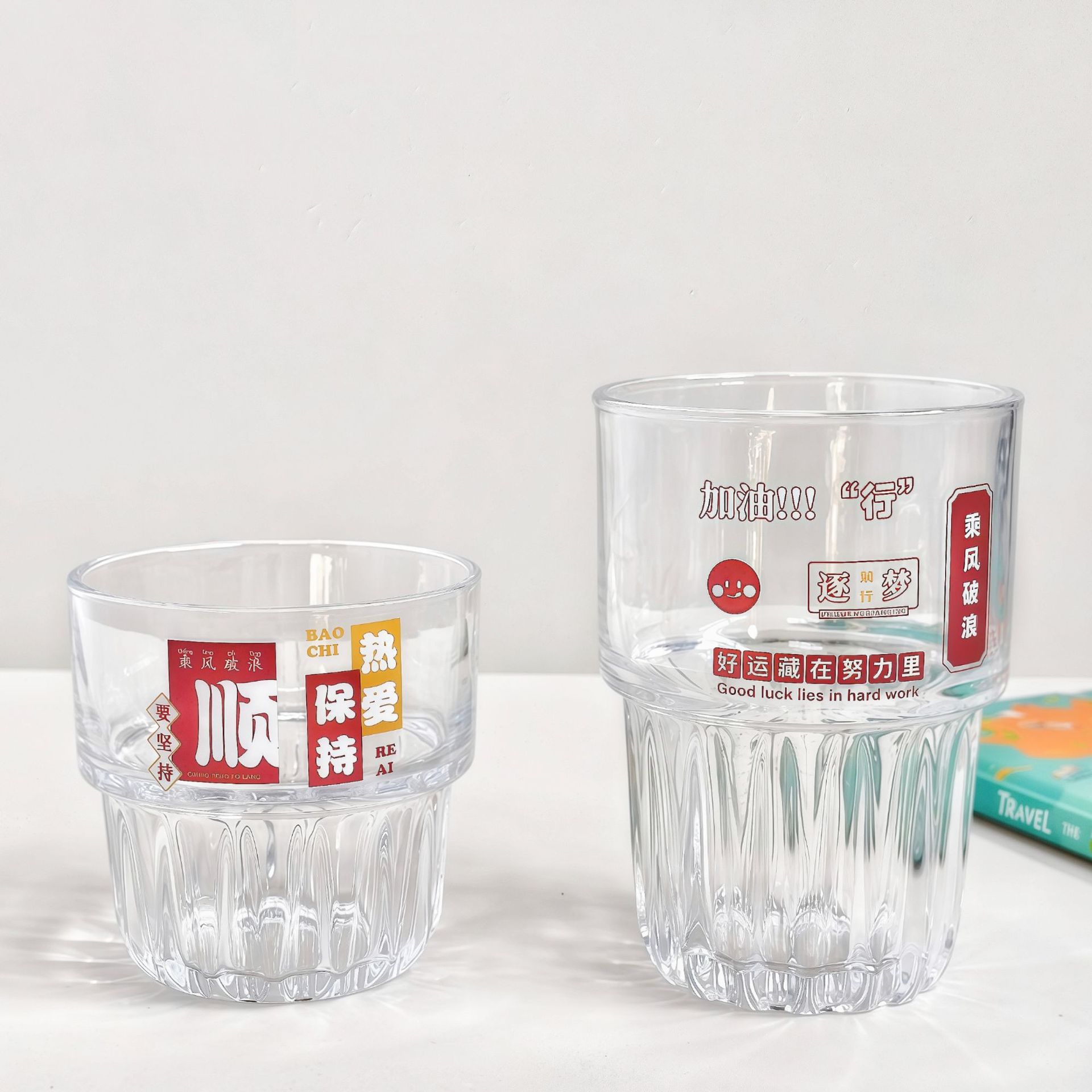 创意文案啤酒杯网红玻璃杯咖啡杯餐厅夏季柠檬水杯商用可叠叠酒杯