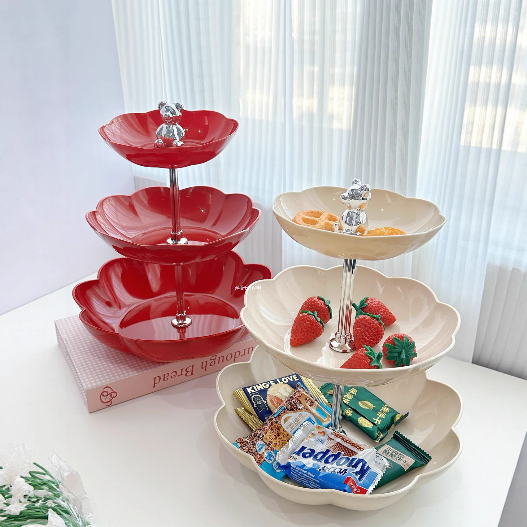 轻奢小熊甜品盘家用客厅酒店喜庆糖果盘摆放零食盘多层高档水果盘