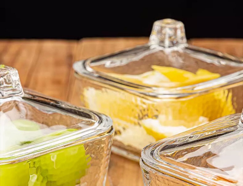 槌目模様の四角いガラスボウル、インスタ映え、シンプルでフレッシュな家庭用デザートボウル、フルーツサラダボウル、朝食ボウル、小鉢、越境販売