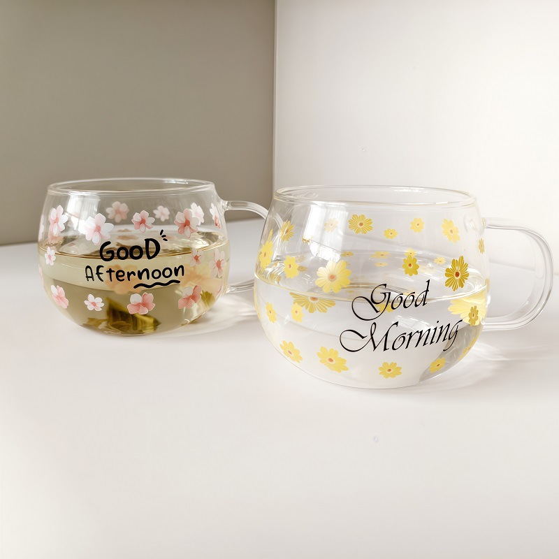 現物透明金花ガラスコップ二重構造取っ手付きグラスシンプル夏グラスグラスグラス