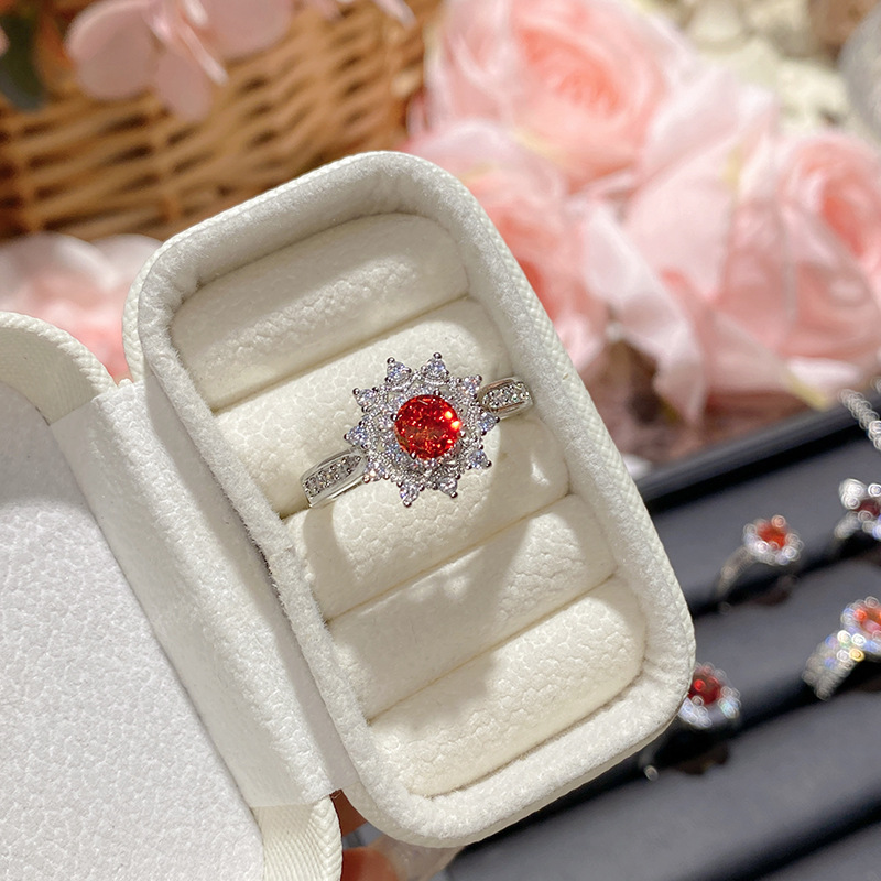 ツバキの貴気の豪華なザクロのルビーの指輪の中世の設計の貴婦人の晩餐会の赤いコランダムの百合の指輪