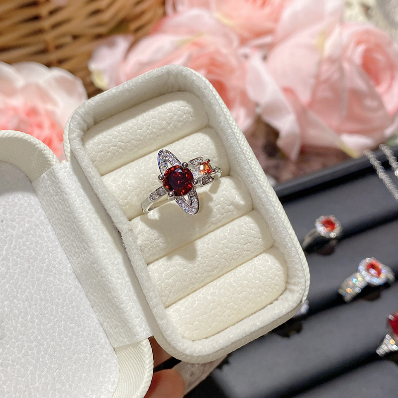 ツバキのきらきら輝く豪華な貴気ザクロの赤い水滴の宝石の指輪は金メッキの復古の宮廷風を混ぜて宝石のスーツを配合します。