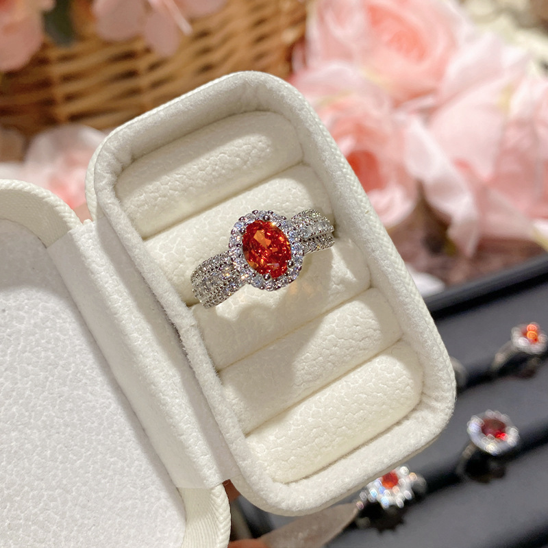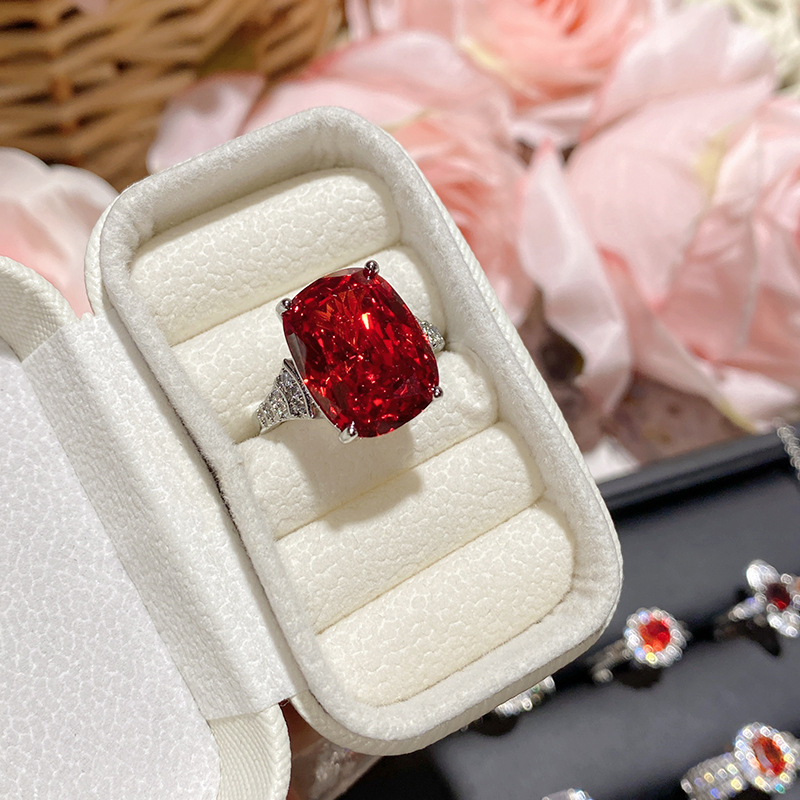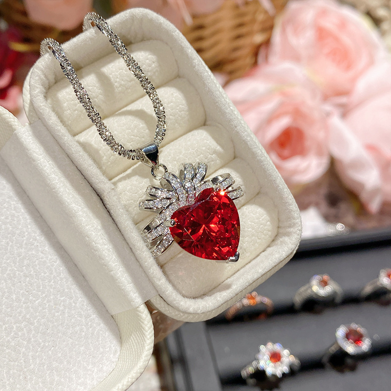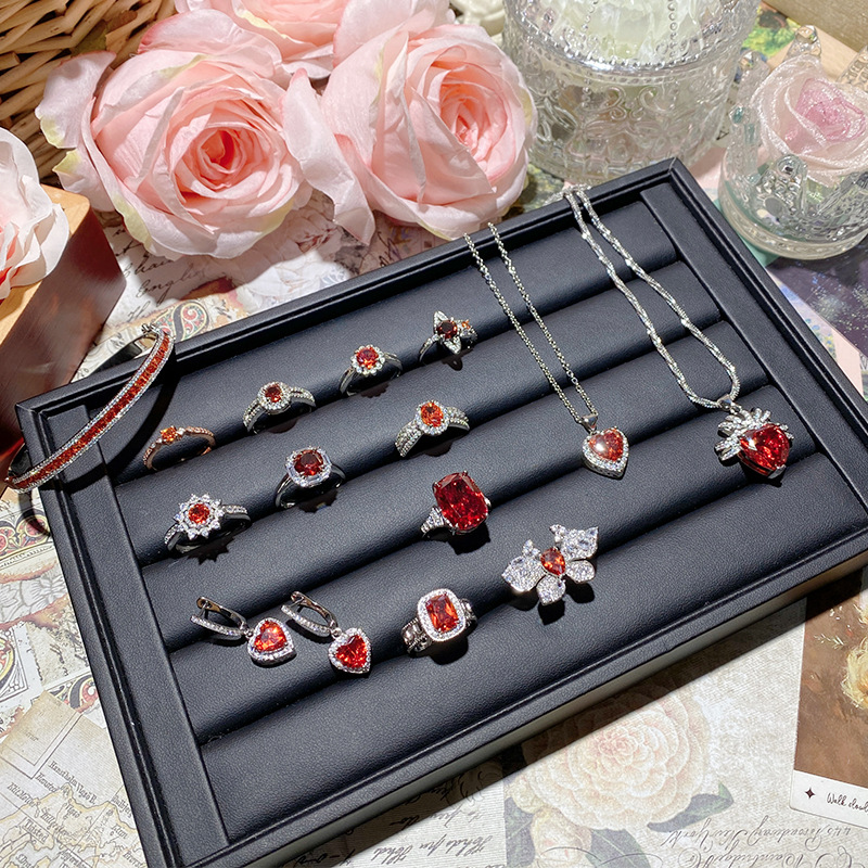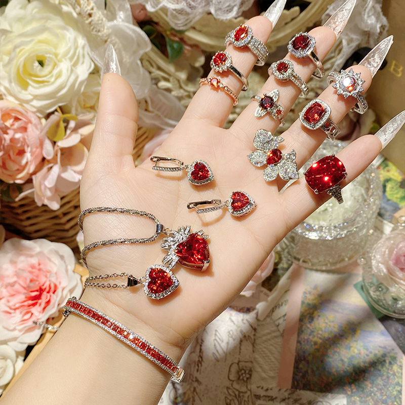 ツバキ中世高定ジュエリールビー指輪セット女性メッキ18k金満ドリル豪華赤コランダムネックレス