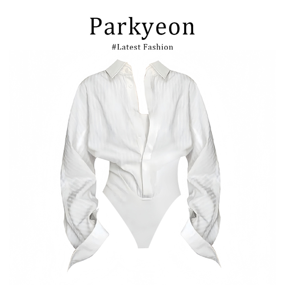 修身假两件连体衬衫女2025秋季法式薄款收腰POLO领上衣