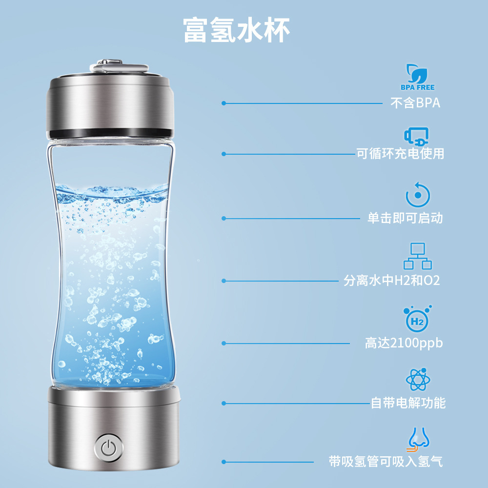 厂家直营高浓度水素水杯 会销礼品养生高硼硅玻璃杯保健富氢水杯