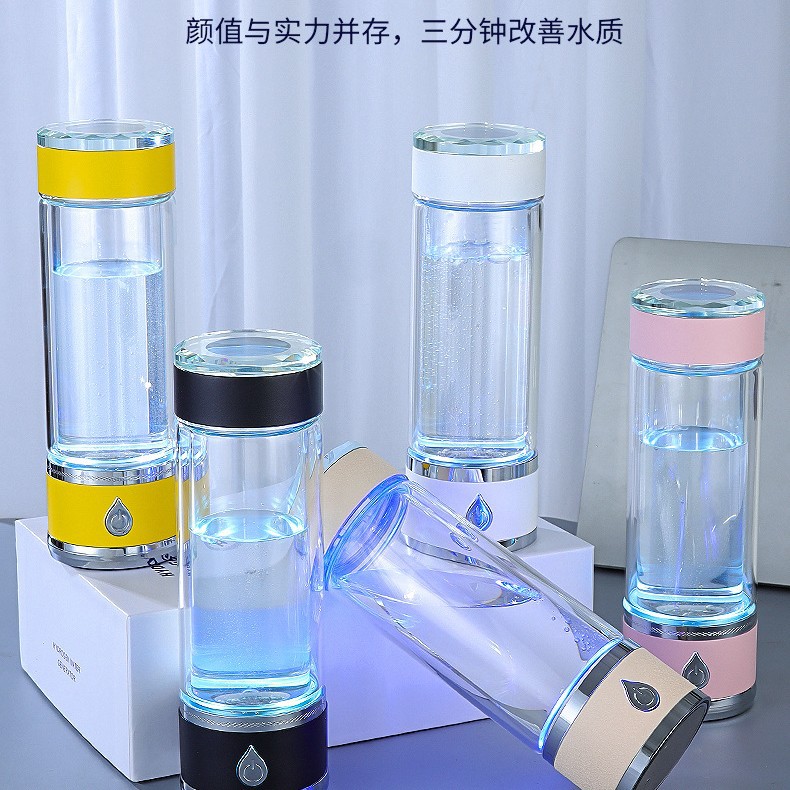 云素纯色双层玻璃水杯水素水养生氢氧分离弱碱性生成器高浓度