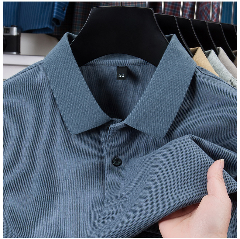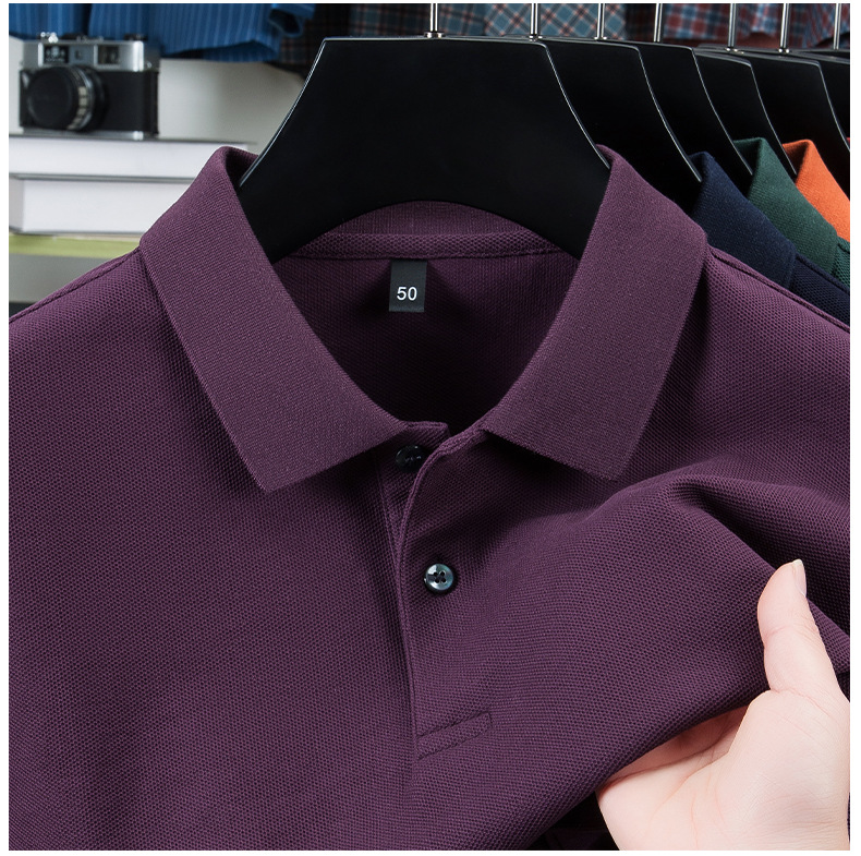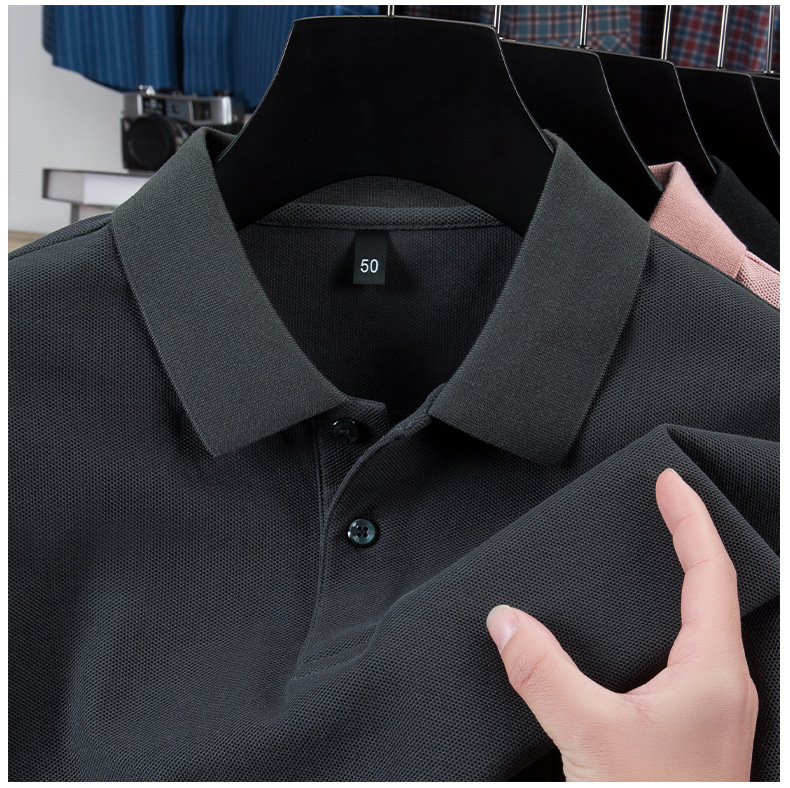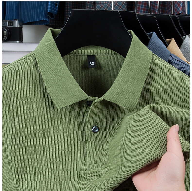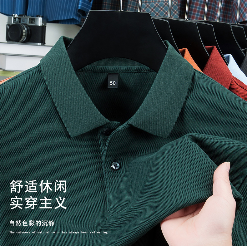 100% 珠地純綿メンズポロシャツメンズ半袖折り襟tシャツ夏ビジネスカジュアルパパ着高級感