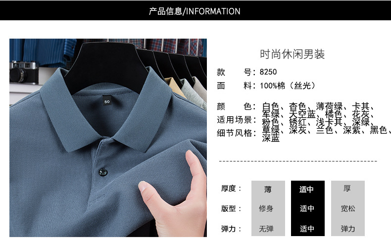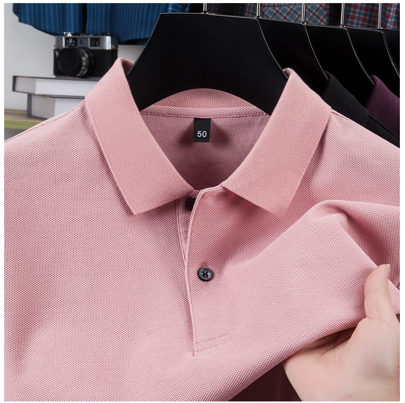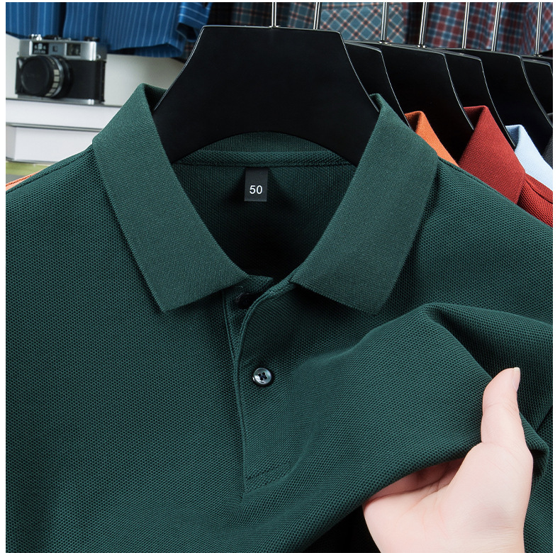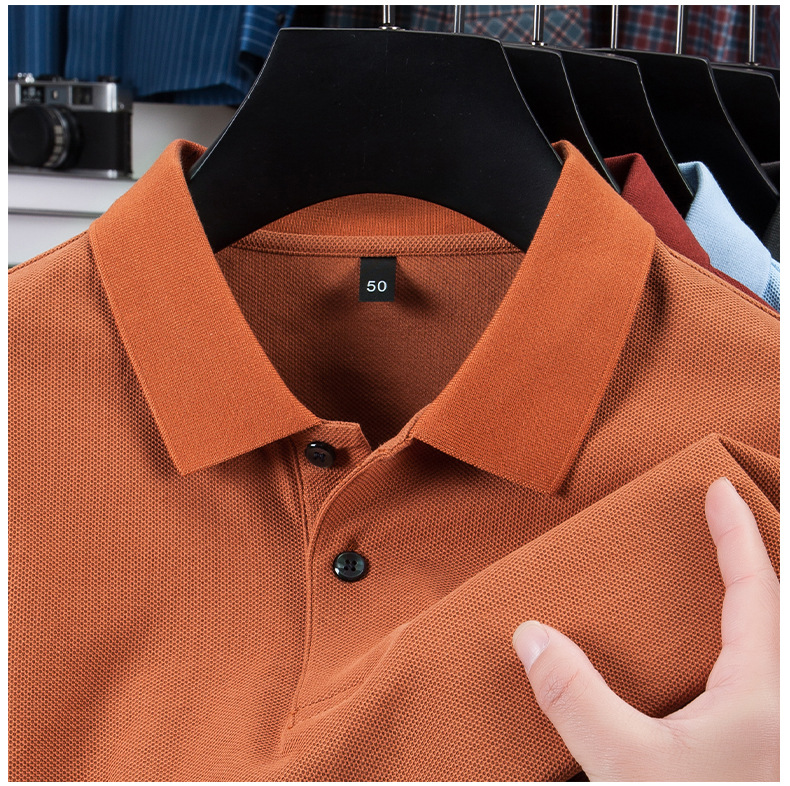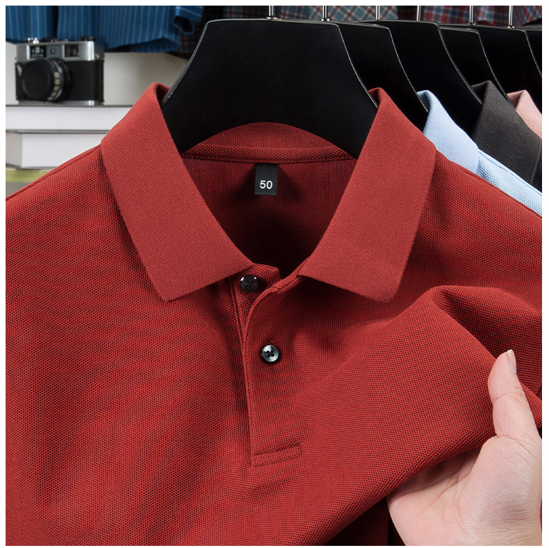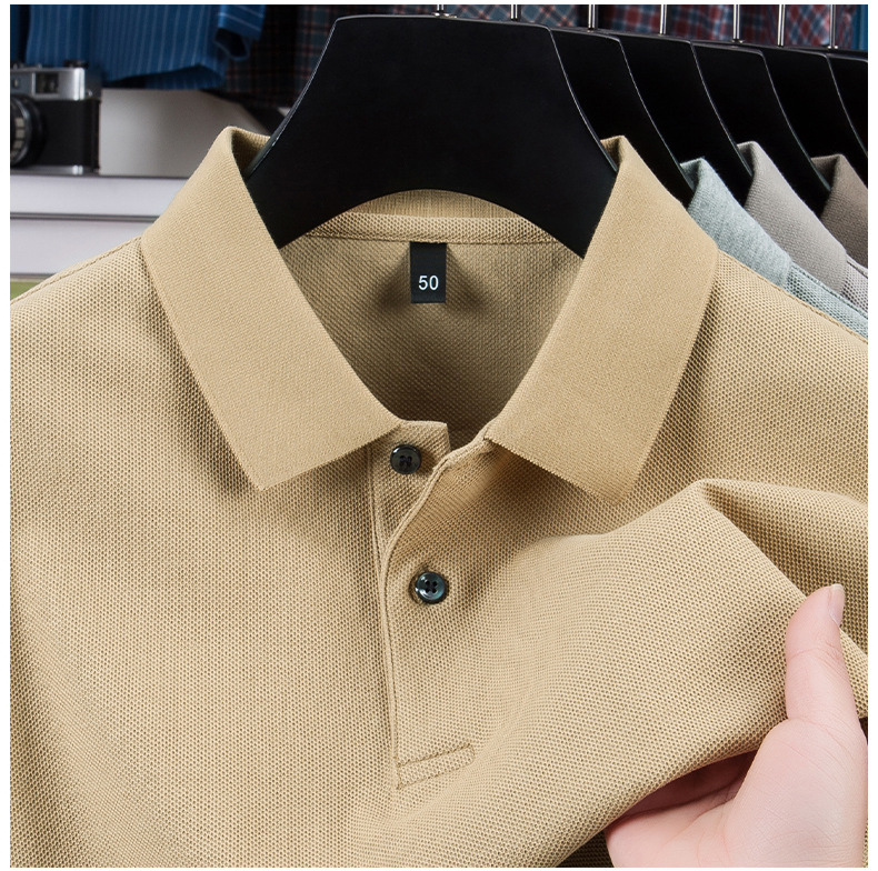 100% 珠地純綿メンズポロシャツメンズ半袖折り襟tシャツ夏ビジネスカジュアルパパ着高級感