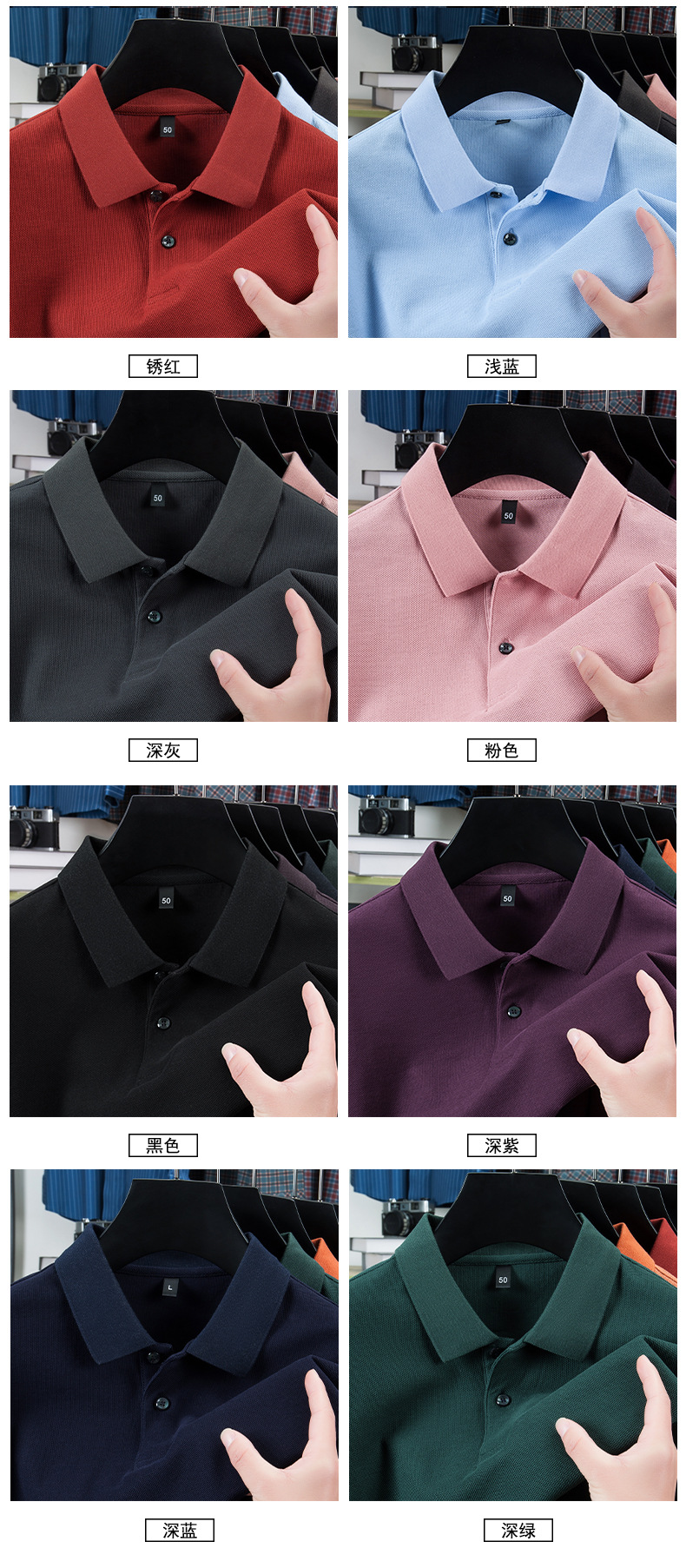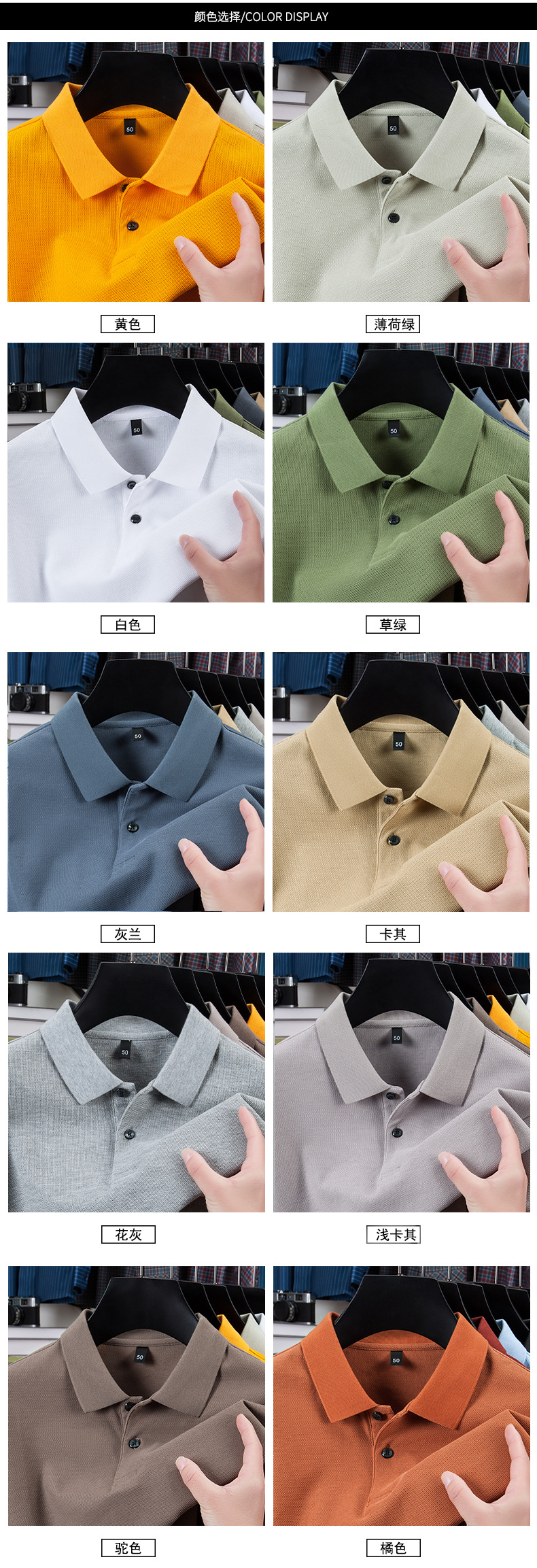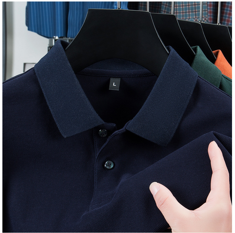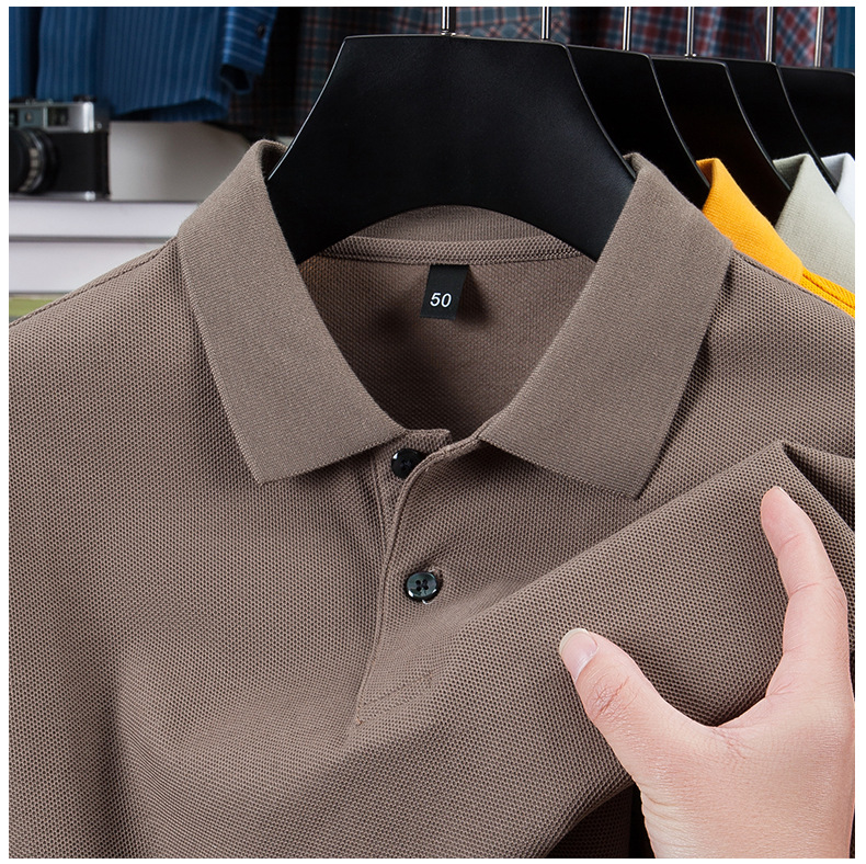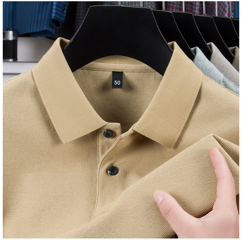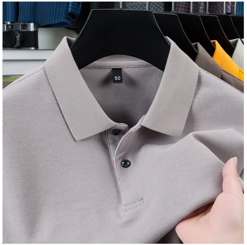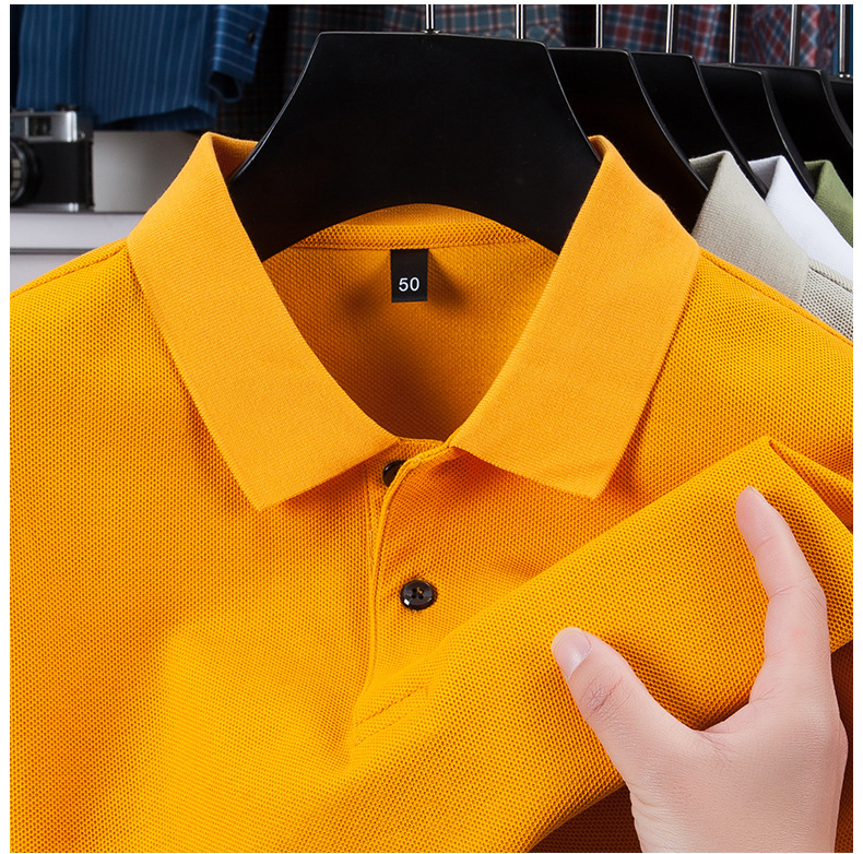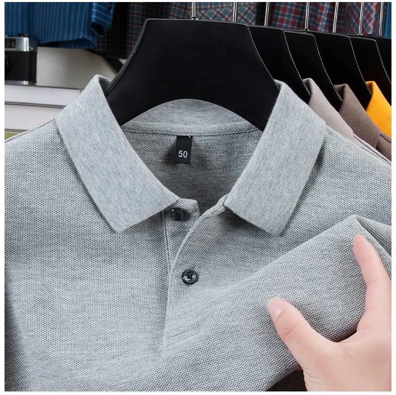 2025夏の新型シルク綿半袖poloシャツ男性ビジネスカジュアル純色シンプルな襟付き純綿tシャツ男性