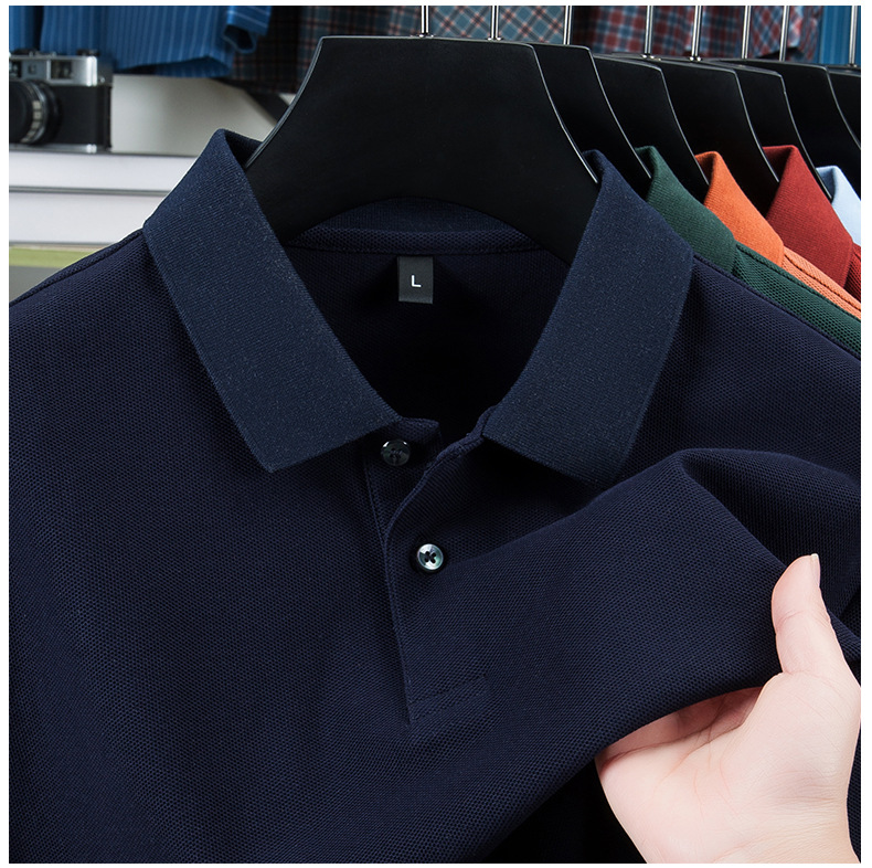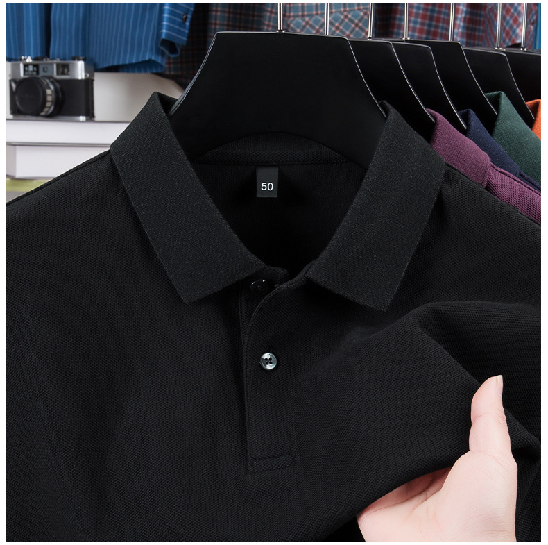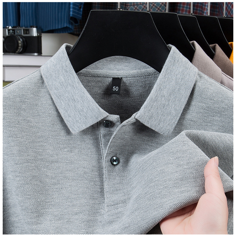 100% ガウンコットンメンズポロシャツ高级感长袖折り襟tシャツメンズ春カジュアルビジネスメンズ服