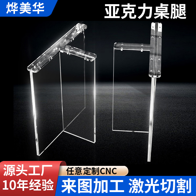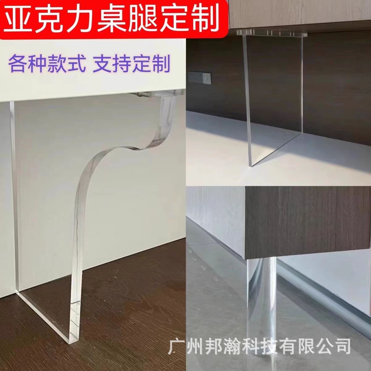 透明亚克力桌腿加工7字型弧形悬空书桌腿支撑T形一字型圆柱型桌脚