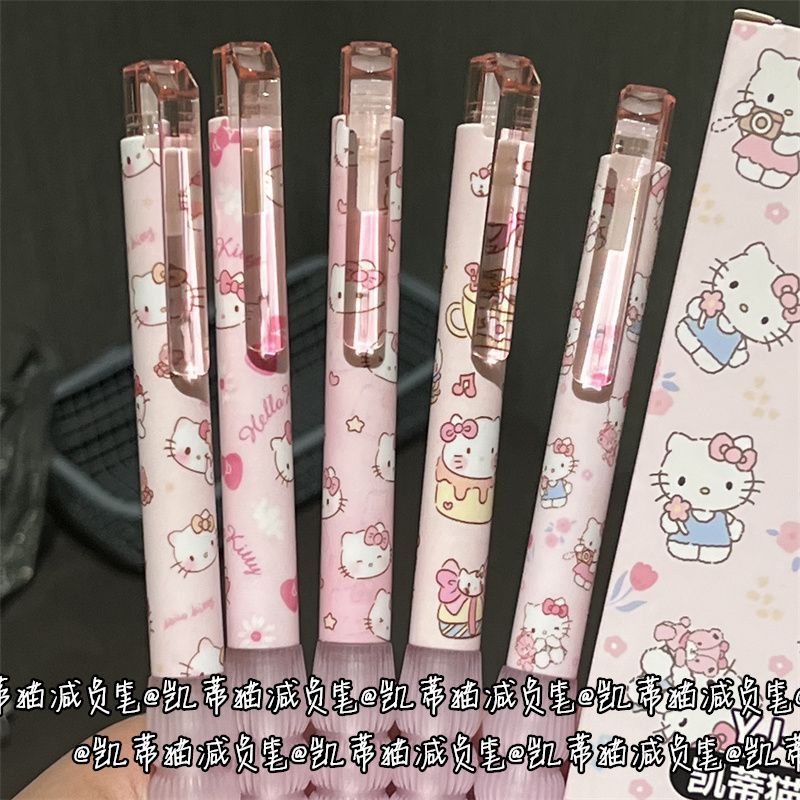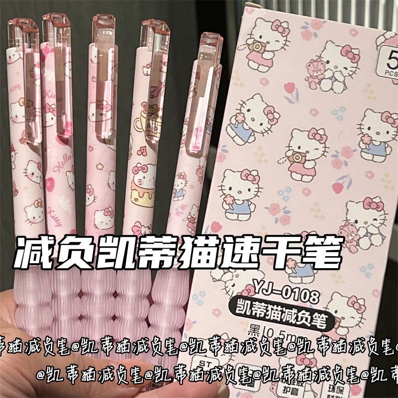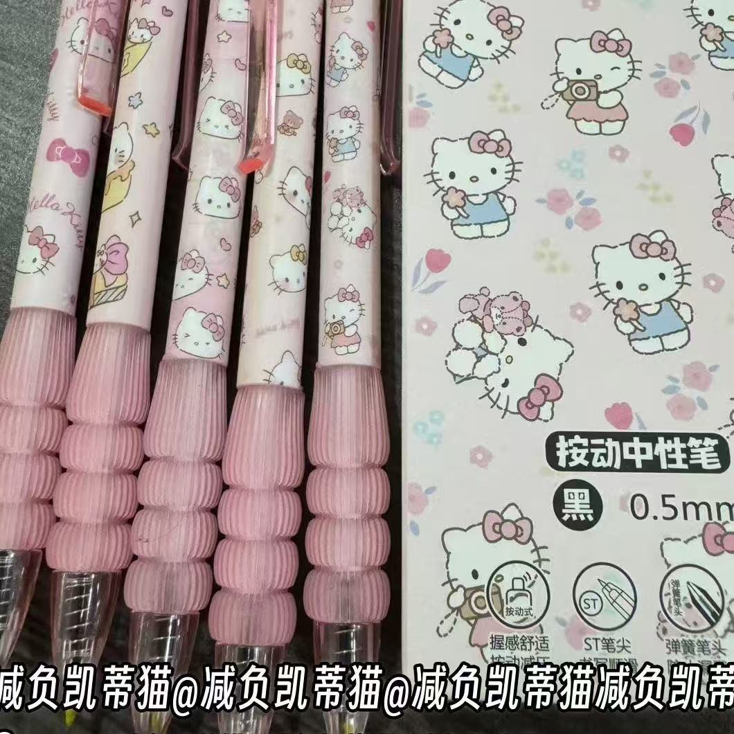 减负凯蒂猫速干笔ins风高颜值按动少女心st头黑色速干刷题笔0.5