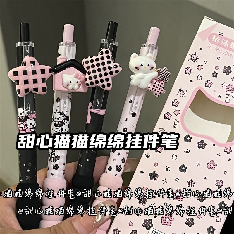 甜心猫猫绵绵挂件笔ins风少高颜值按动式少女心st头黑色刷题笔0.5