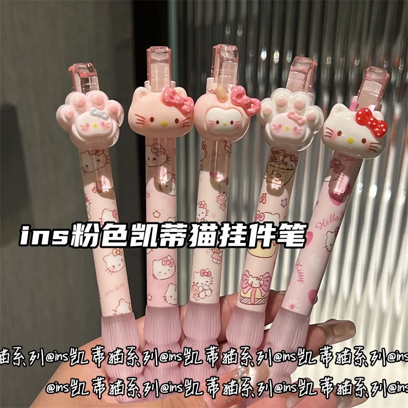 インピンクハローキティペンダントペン負担軽減プレスペンインスタイル高価値ガールハートstヘッドブラック速乾ペン