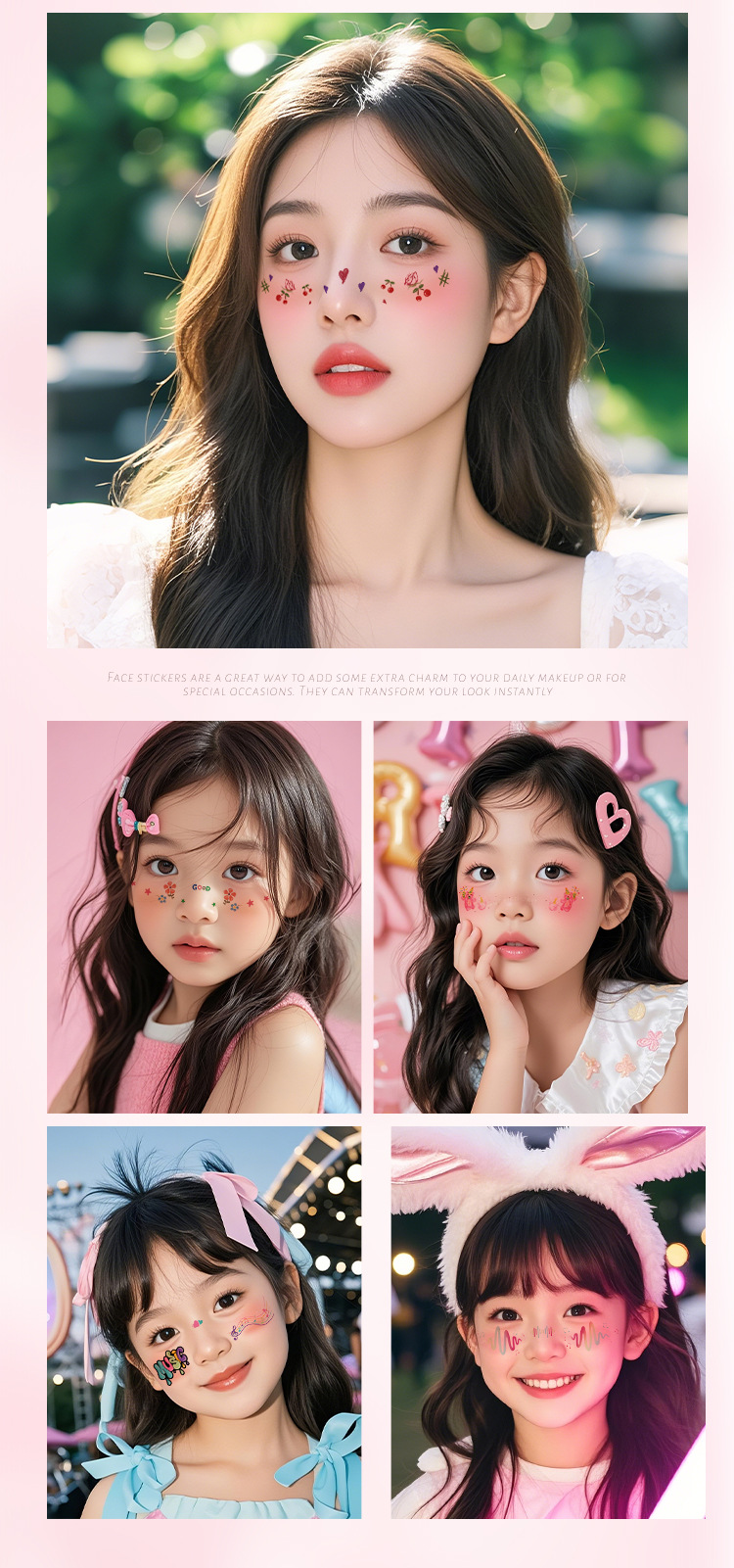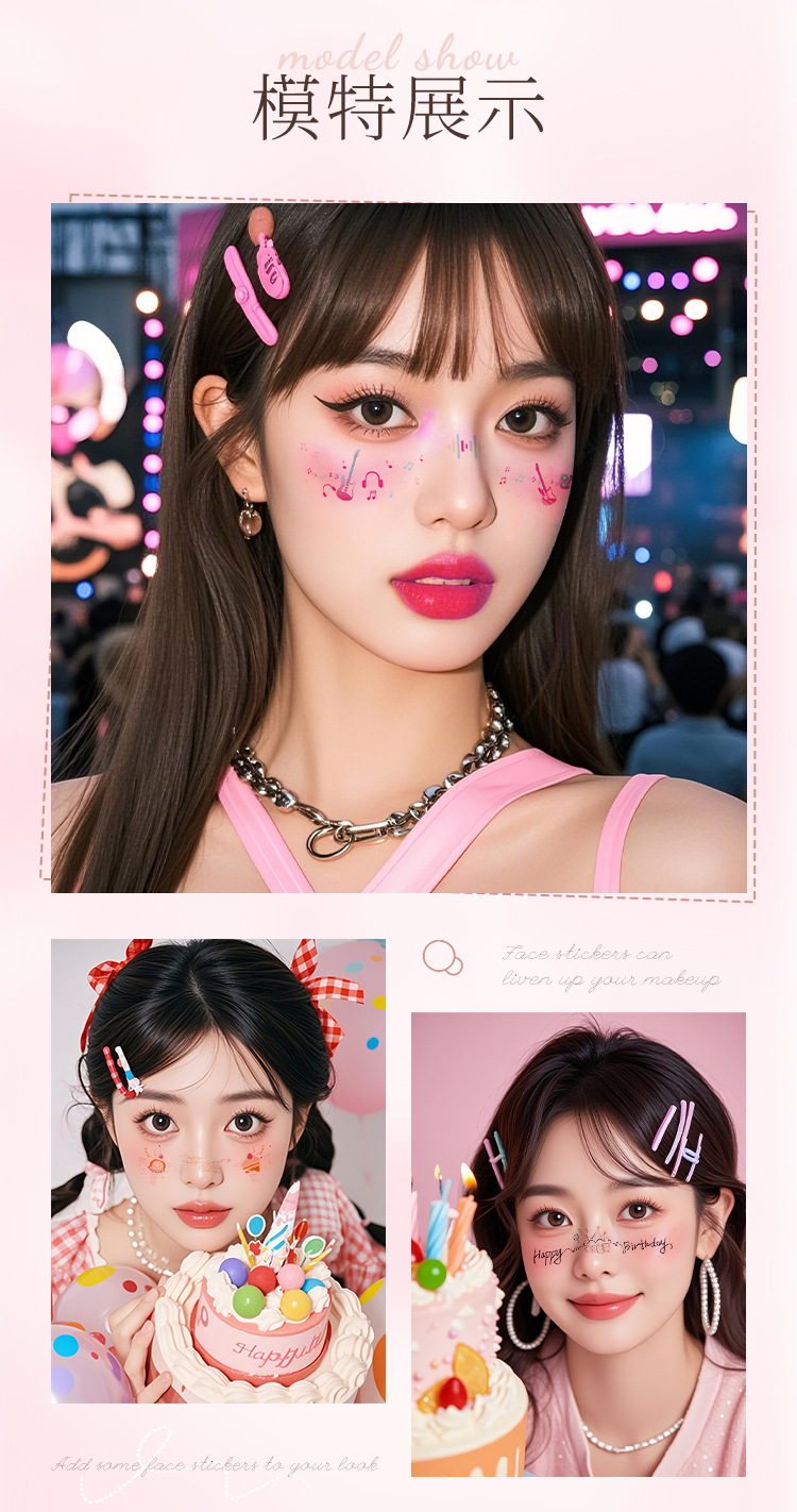 誕生日用、音楽フェス用、写真撮影用、お正月用フェイスシール
