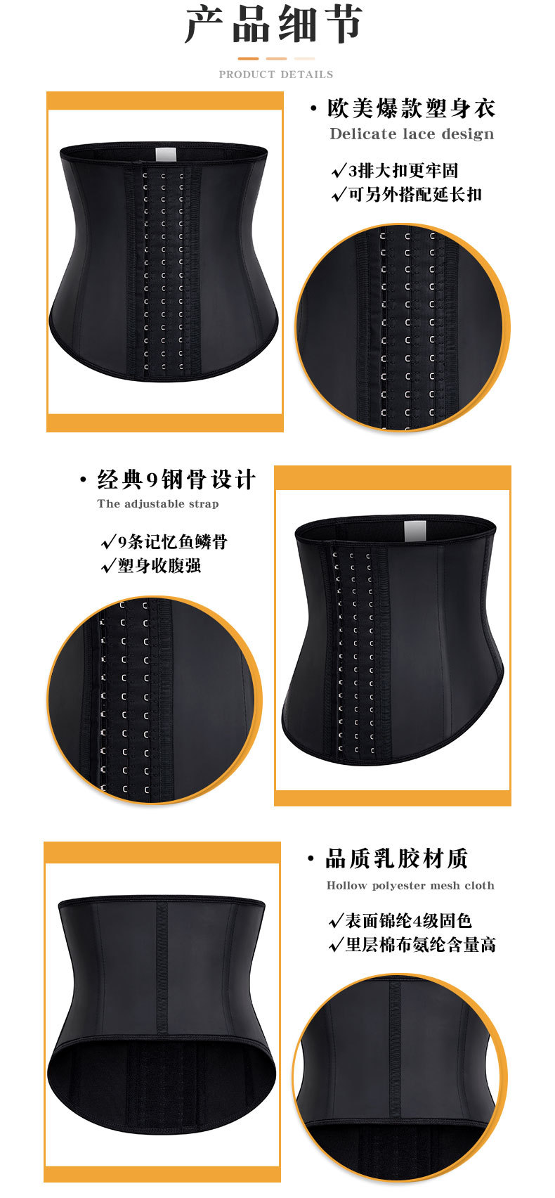 9鋼骨ラテックスコルセット、スポーツ用シェイプアップ腹帯、ウエストニッパー、女性用バックル付き腹部保護、9加圧痩身ウエストバンド
