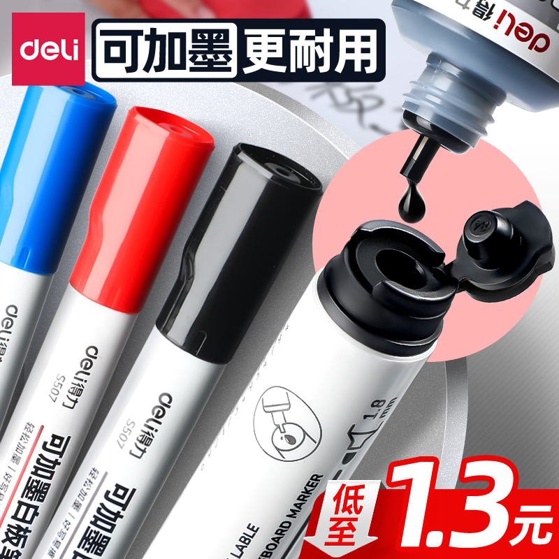 得力白板笔可擦可加墨水儿童粗头大容量教师用记号笔红色黑色