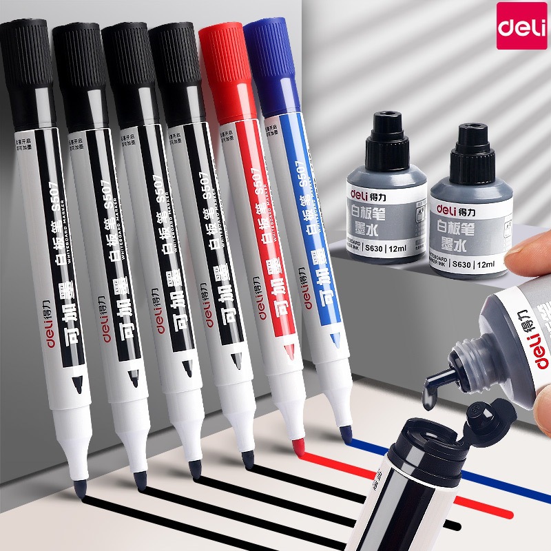 デリホワイトボードペン消去可能な S507 赤青黒ホワイトボードペン詰め替えインクホワイトボード教育ホワイトボードペン
