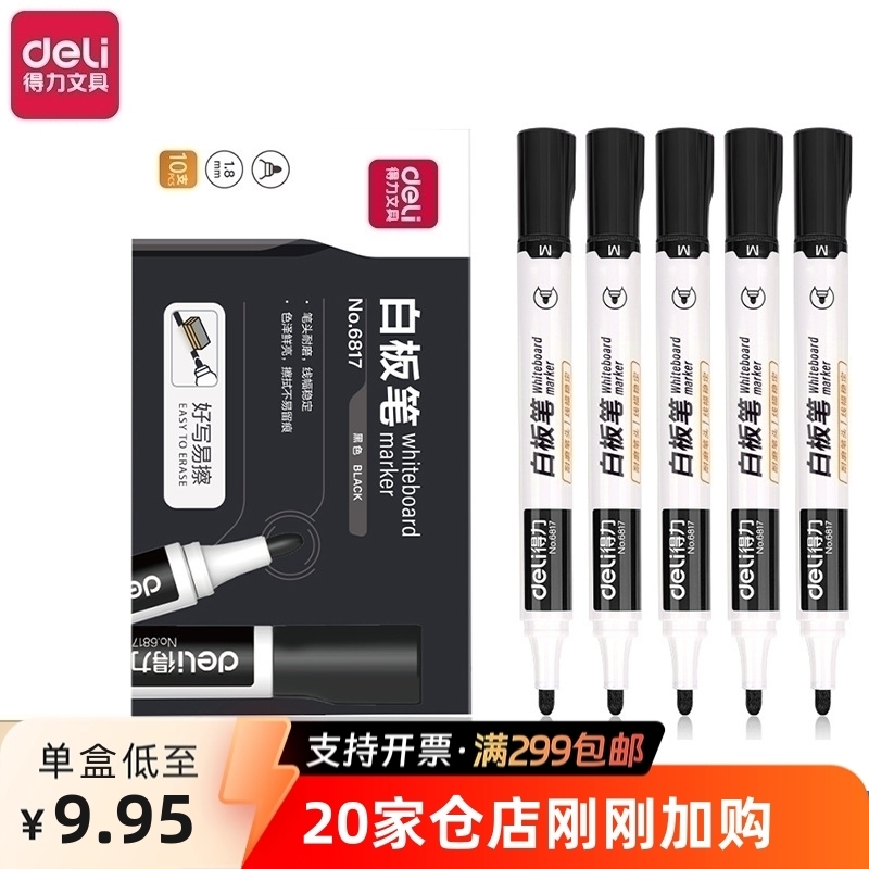 得力6817白板笔水性教师儿童教学用易擦记号笔白板用办公大头笔