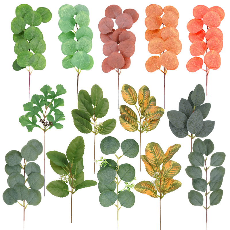 シミュレーションユーカリ単枝卸売、マネーリーフガーランド作成用、インス風緑植物鉢植えケーキフラワーアレンジメント