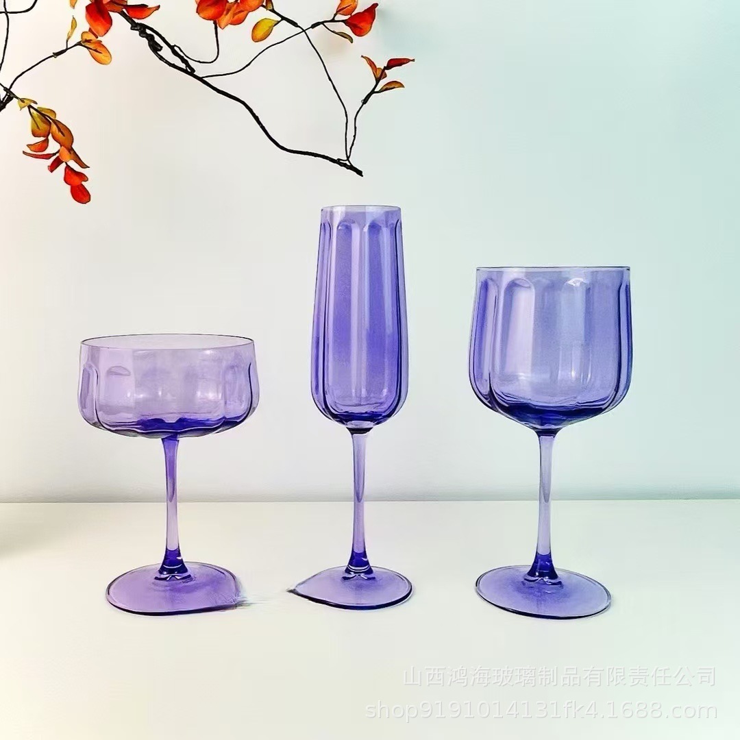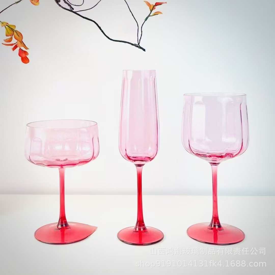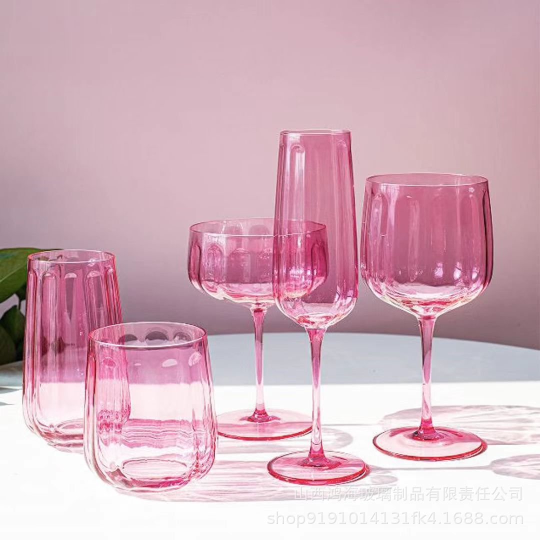 順皿グラデーション粉少女アリスドリルガラスカップ高足カップ軽贅沢ワイングラスシャンパンカップ