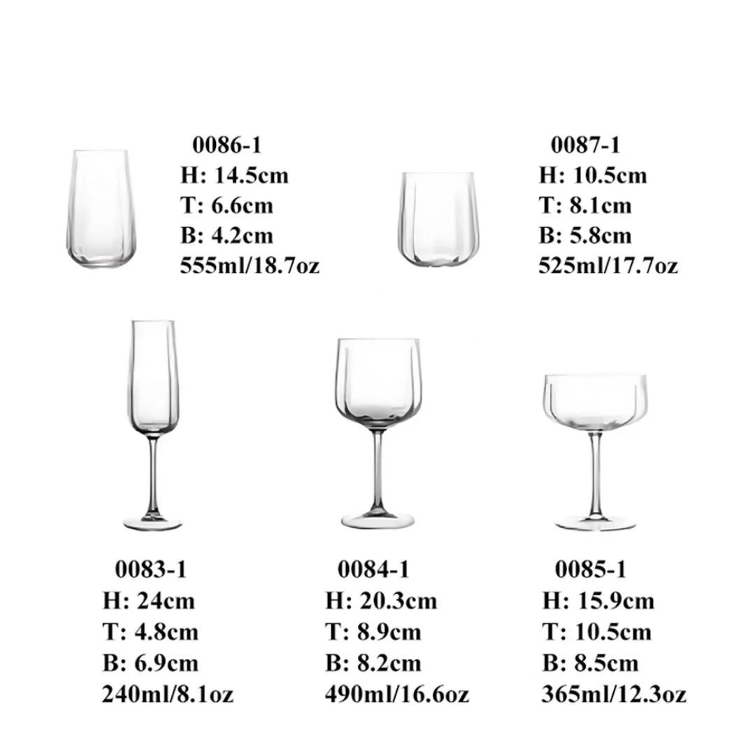 赤ワイングラス - シングル,シャンパングラス--シングル,カクテルグラス,背の高いウォーターカップ,短いウォーターカップ