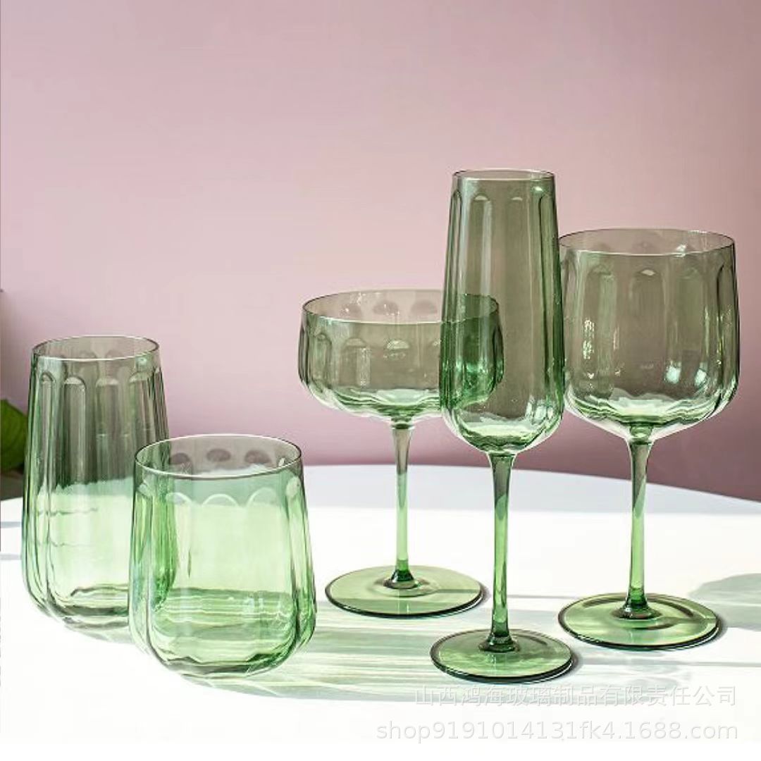 中古風人工ブロー製水晶グラス小衆緑高足カップins風ワイングラス緑飲料カップ