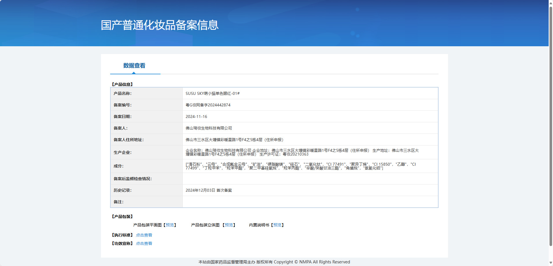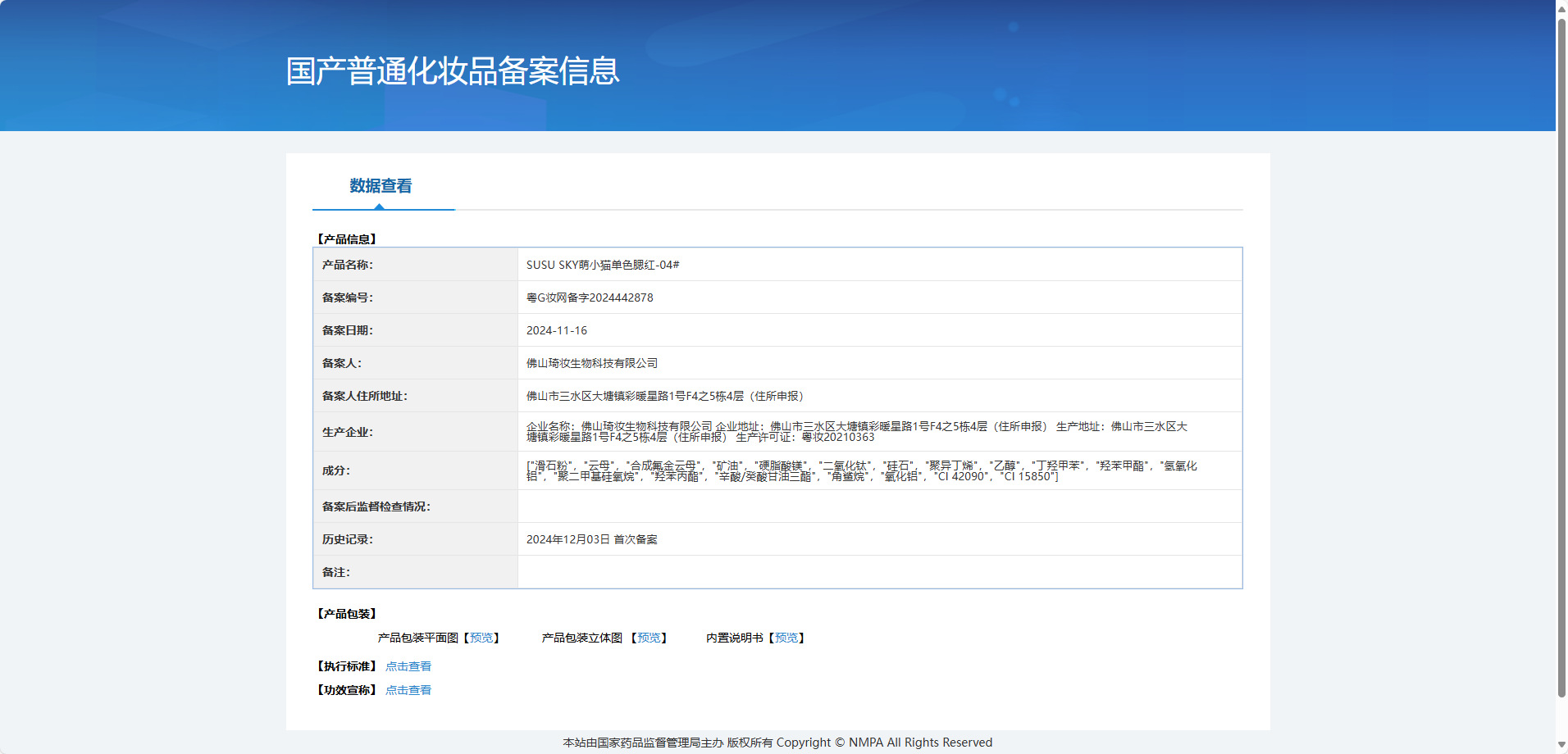 特殊化粧品登録証番号 広東省Gメイクアップネットワーク準備番号2023186045
