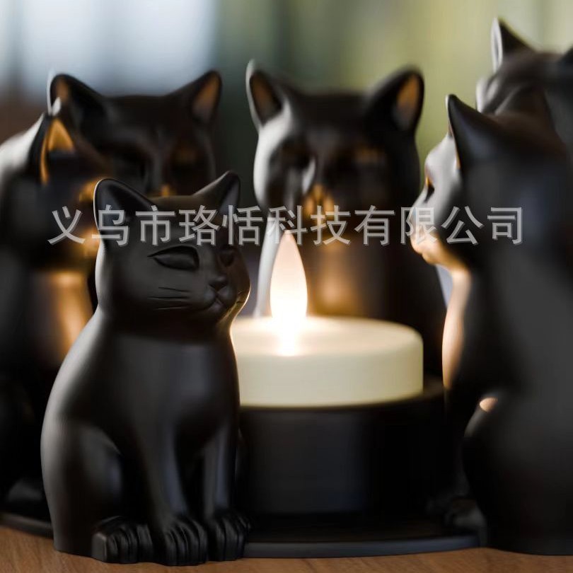3d打印猫咪环形烛台家居黑色小猫摆件装饰卧室批发手工创意礼物