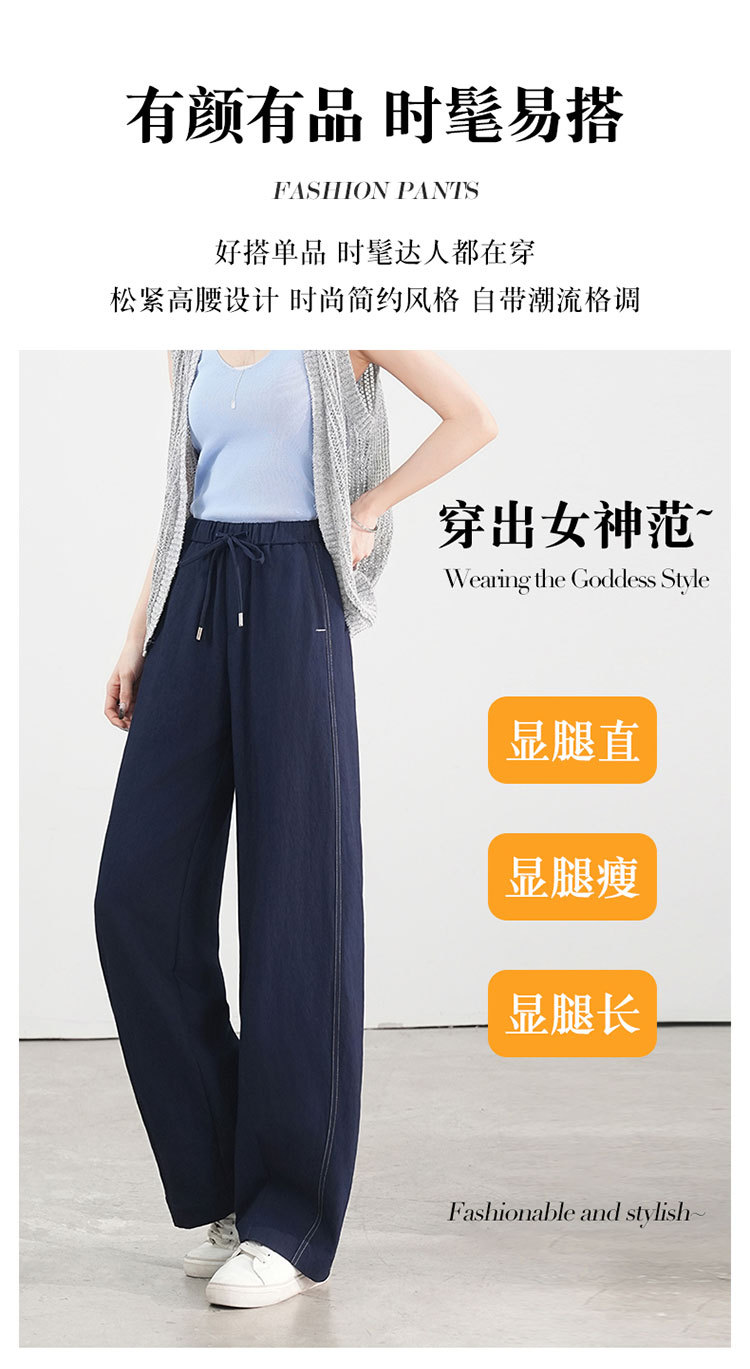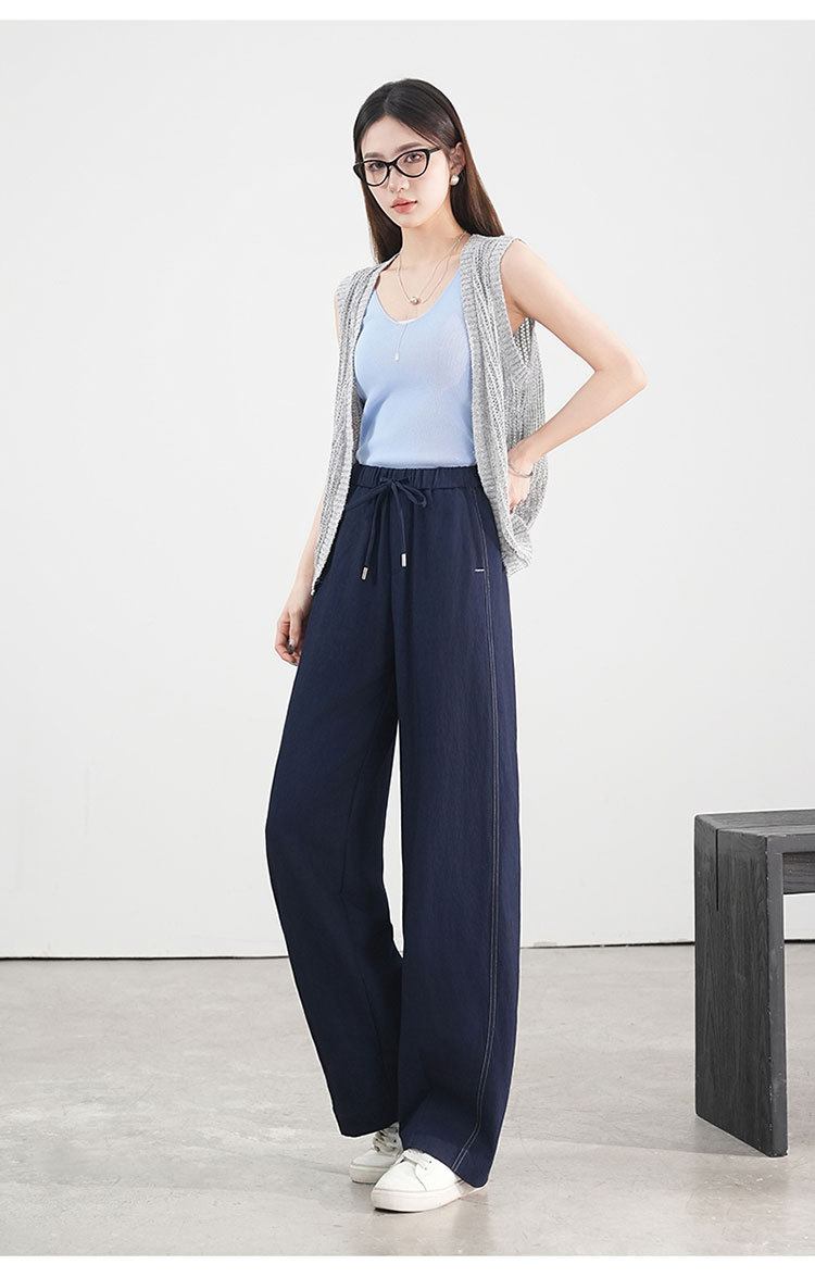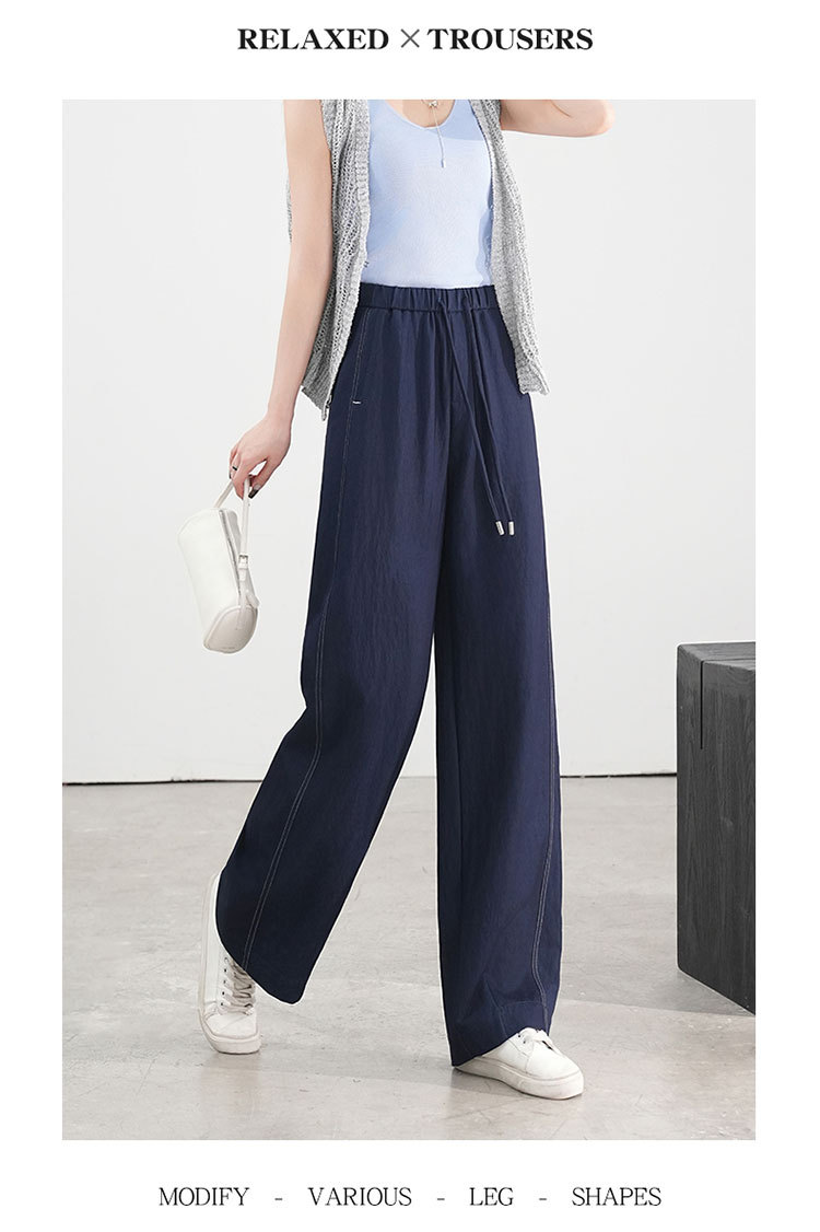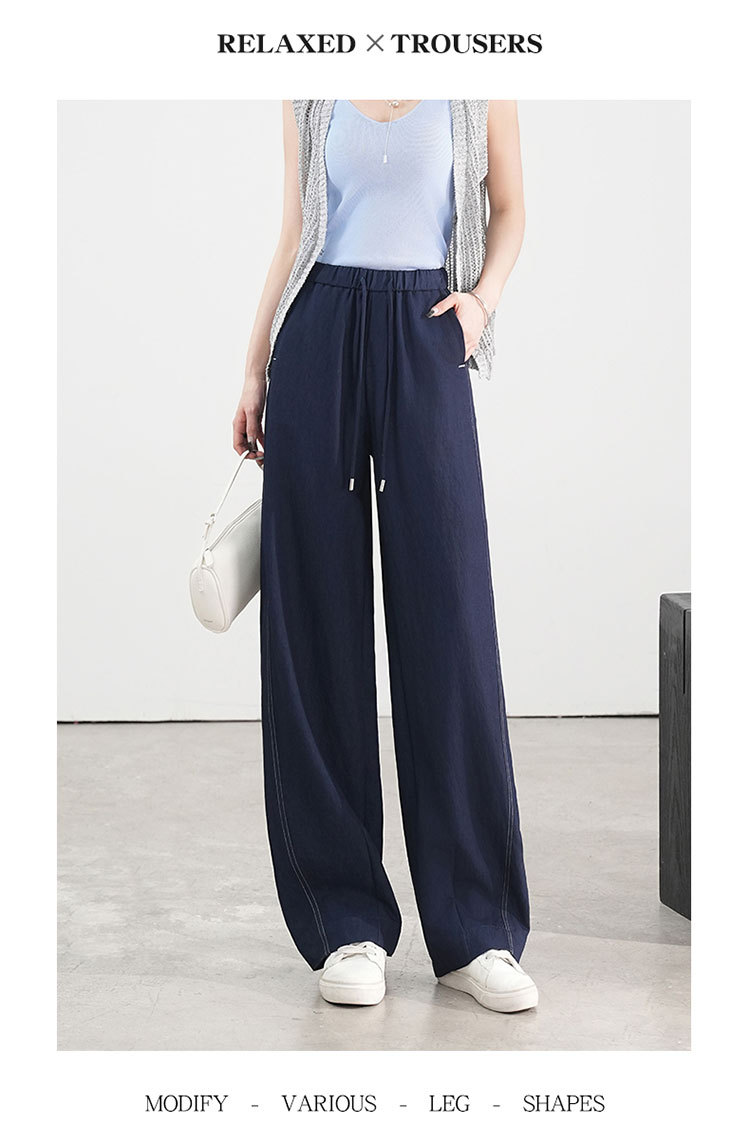 リヨセルリネンワイドレッグパンツ女性のための 2025 夏の新スタイルスリムカジュアルパンツハイウエスト巾着ロングパンツ