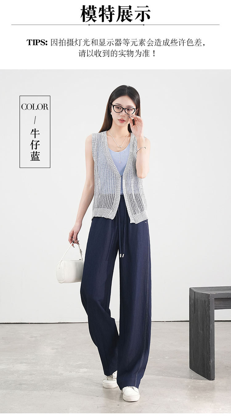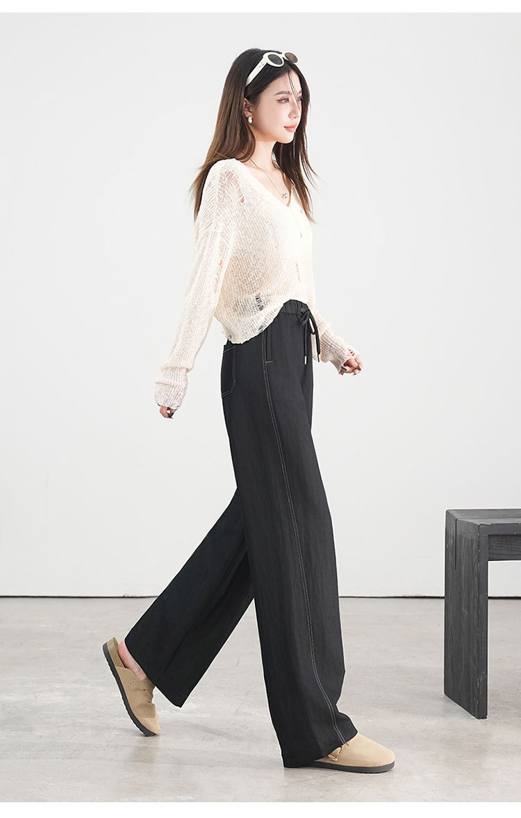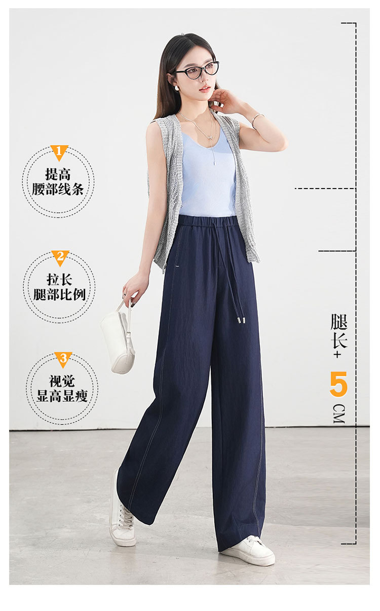 リヨセルリネンワイドレッグパンツ女性のための 2025 夏の新スタイルスリムカジュアルパンツハイウエスト巾着ロングパンツ