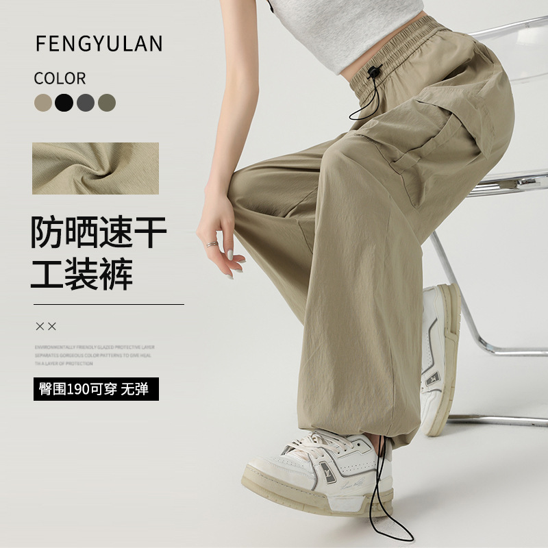 2025 新しい夏の薄い速乾性アメリカンスタイル空挺部隊パンツ女性のワイドレッグ大きいサイズオーバーオール在庫卸売