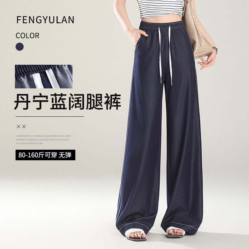 腰が高くてやせている丹寧青デニムのワイドパンツ女性2025春夏の新型の垂れ下がった感じがします。