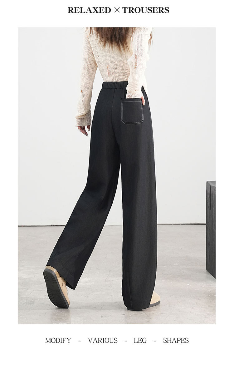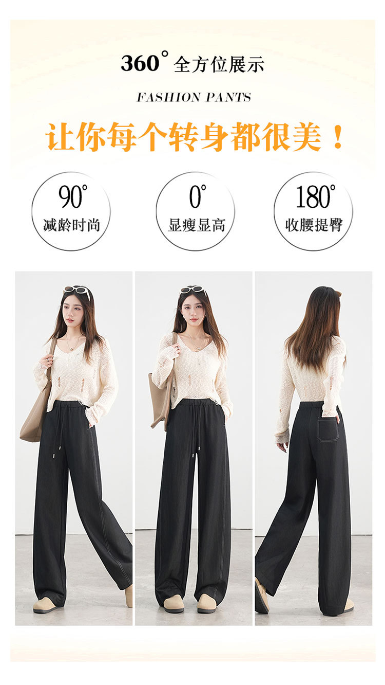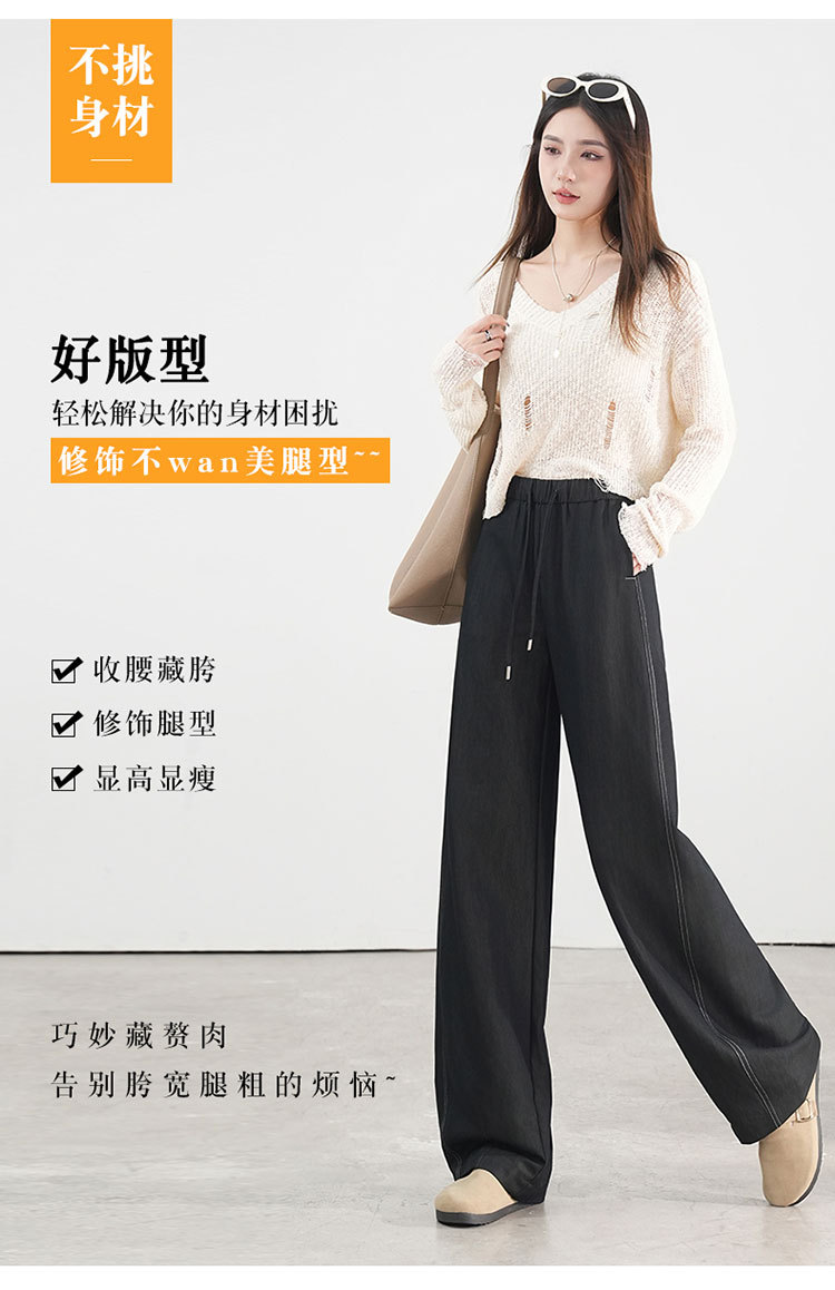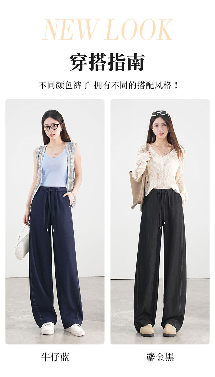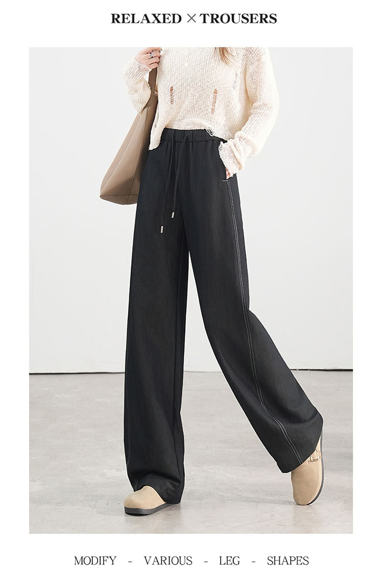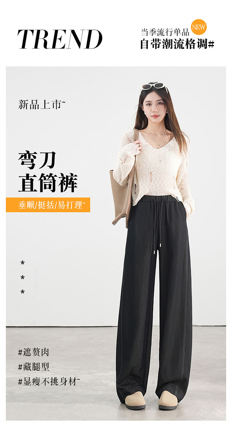 テンセルリヨセルカジュアルパンツ春夏新作ワイドレッグパンツドレープレイジーストレートパンツ万能ハイウエストフロアレングスパンツ