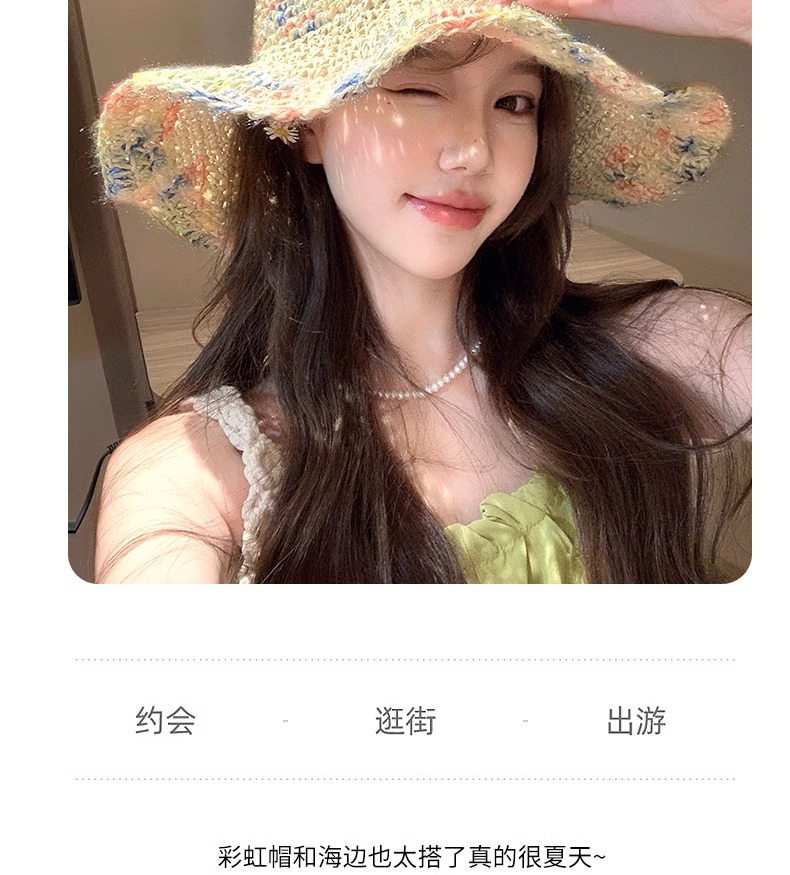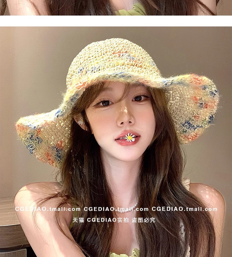 麦わら帽子の女性2025新型夏の顔の小さいカラーはビーチの海辺の休暇の大きい軒の日よけの日よけの帽子を編みます。