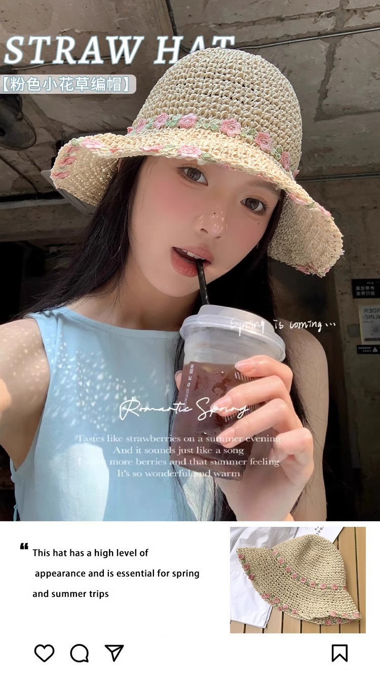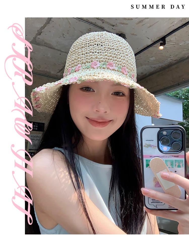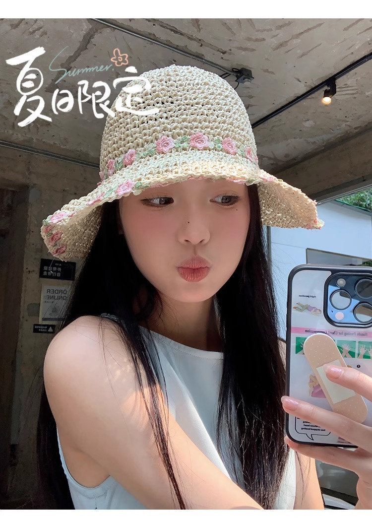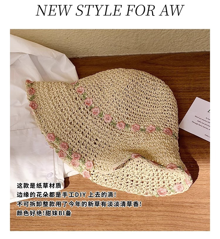 花の麦わら帽子の女性の夏の2025新型の帽子は海辺の休暇旅行の日よけの日よけの帽子の日よけの帽子を畳むことができます。