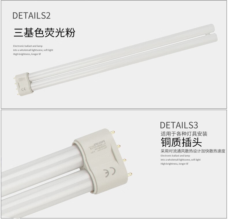 PHILIPS フィリップス 三色 4P フラット 4ピン 24W36W40W55WH タイプ PL-L 省エネ蛍光灯挿管