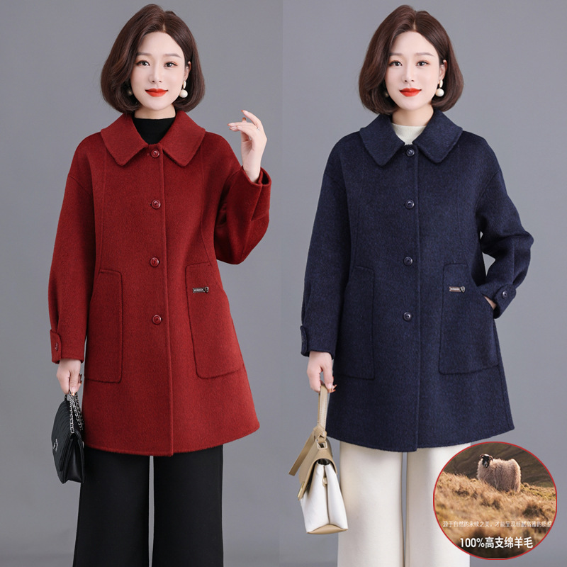 批发中年妈妈洋气羊绒大衣外套2025秋冬新款高档双面呢大衣中长款