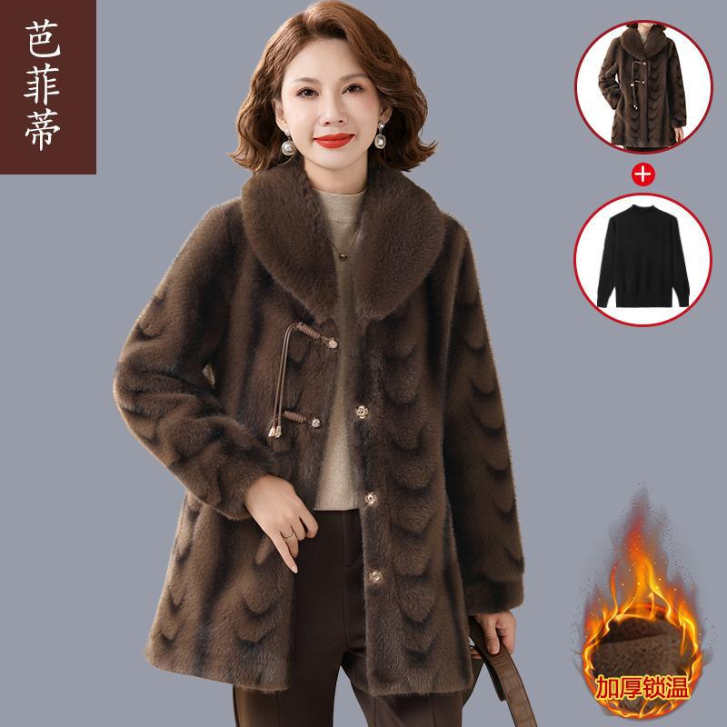 2025新款中长款仿水貂绒外套中老年人女装妈妈装冬装加厚皮毛一体