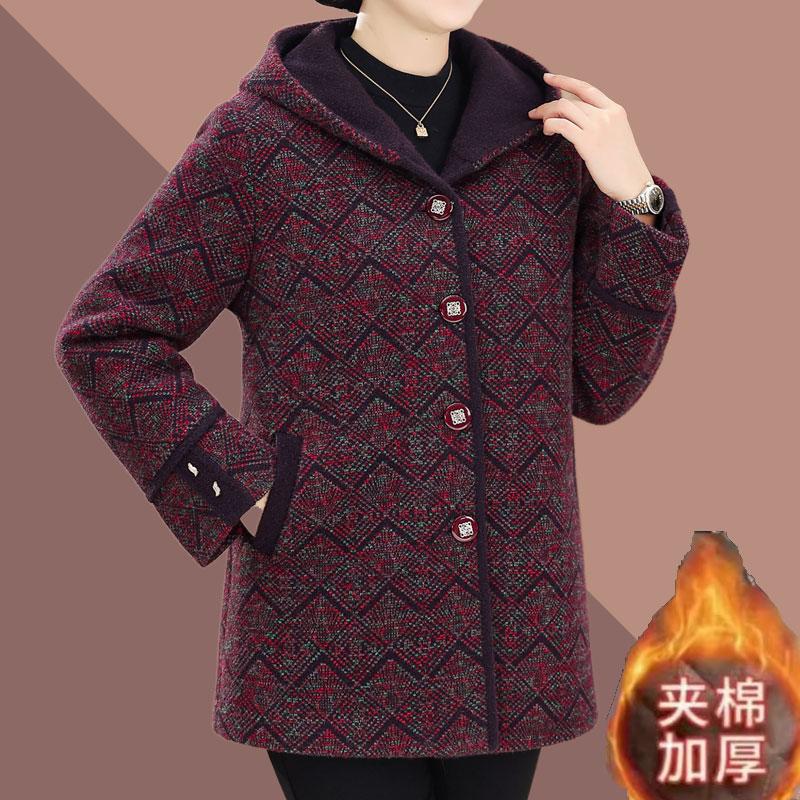 中老年人冬季加绒外套女新款妈妈冬装颗粒绒保暖上衣老人太太棉服
