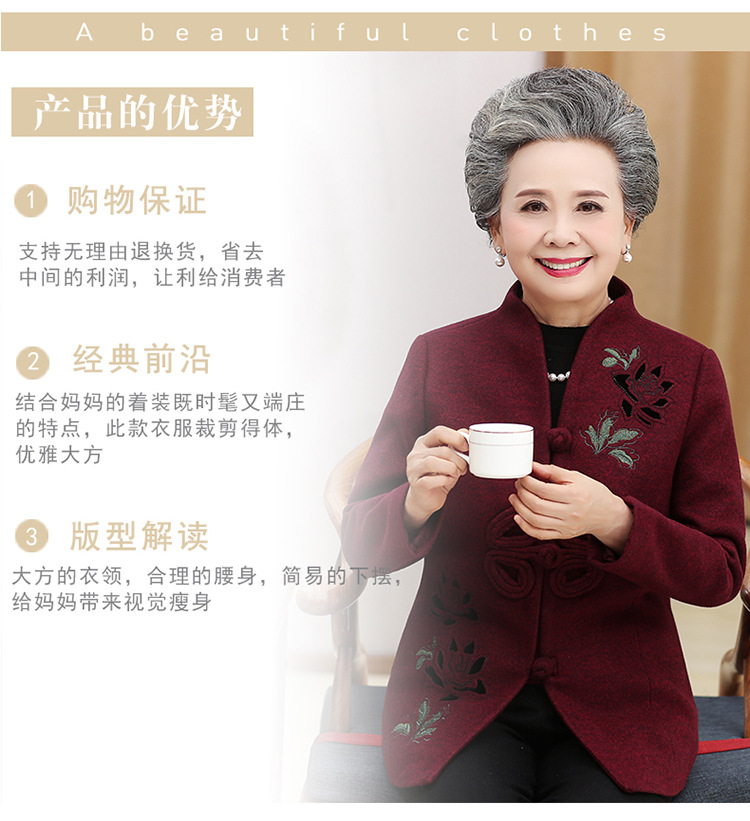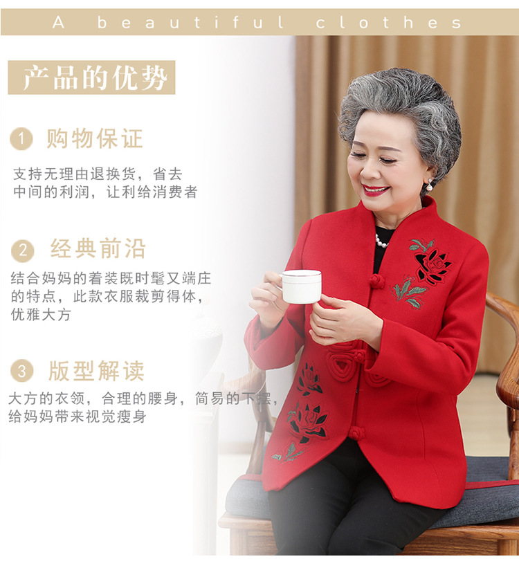 高齢者唐装女性老婦人中国風コートお祝い披露宴ドレス母春装60歳祖母秋装
